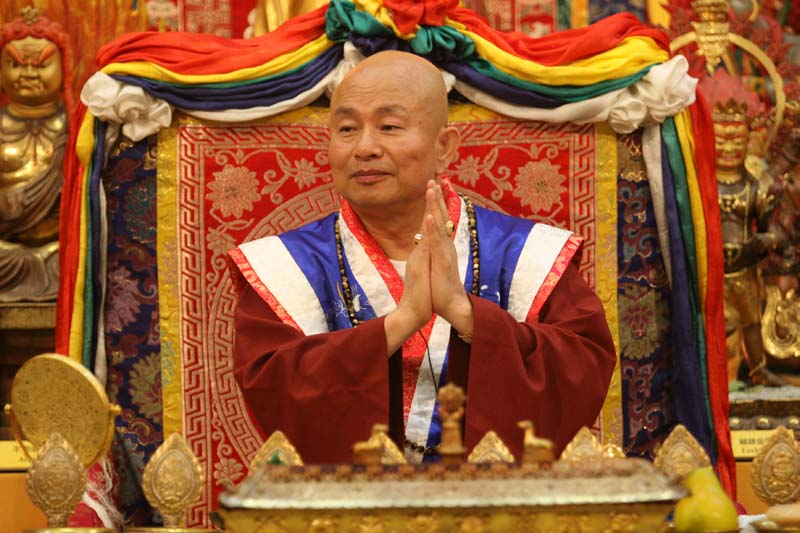 一心敬禮了鳴和尚、薩迦證空上師、十六世大寶法王噶瑪巴、吐登達爾吉上師,一心敬禮壇城三寶,敬禮時輪金剛大明王,敬禮瑤池金母大天尊,敬禮諸尊。尊貴的佛教司司長夫婦、師母、各位上師、教授師、各位法師、各位同門,大家午安。