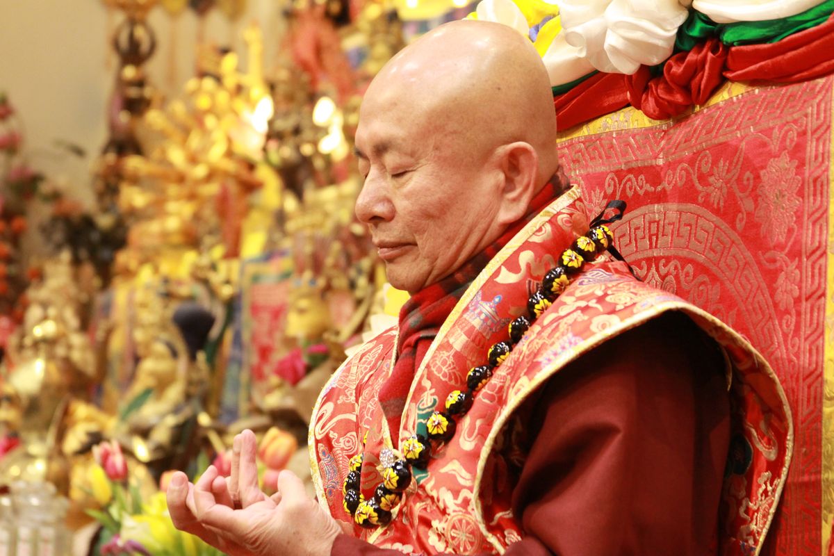 依照龍樹菩薩的中觀來講解金剛鈴的體相用,本體是銅,形相是金剛鈴,作用是發出噹噹聲,這三者不一也不異。學佛也是,人的身體是體,裡面的種子是佛性,修了法就產生光,成就菩提,這是「不一、不異」的中觀。心、佛、眾生,三無差別。