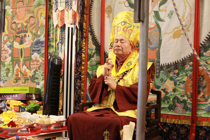 我們敬禮傳承祖師,敬禮了鳴和尚,敬禮薩迦證空上師,敬禮十六世大寶法王噶瑪巴,敬禮吐登達爾吉上師,敬禮壇城三寶,敬禮今天的護摩主尊「時輪金剛佛」。