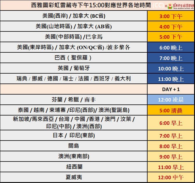 歐洲調時 西雅圖雷藏寺同修、彩虹雷藏寺法會時間表2023年10月29日更換