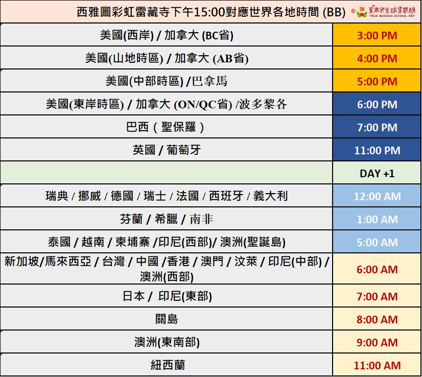 溫馨提醒:澳洲調時,西雅圖雷藏寺和彩虹雷藏寺同修法會世界對照時間表已更改