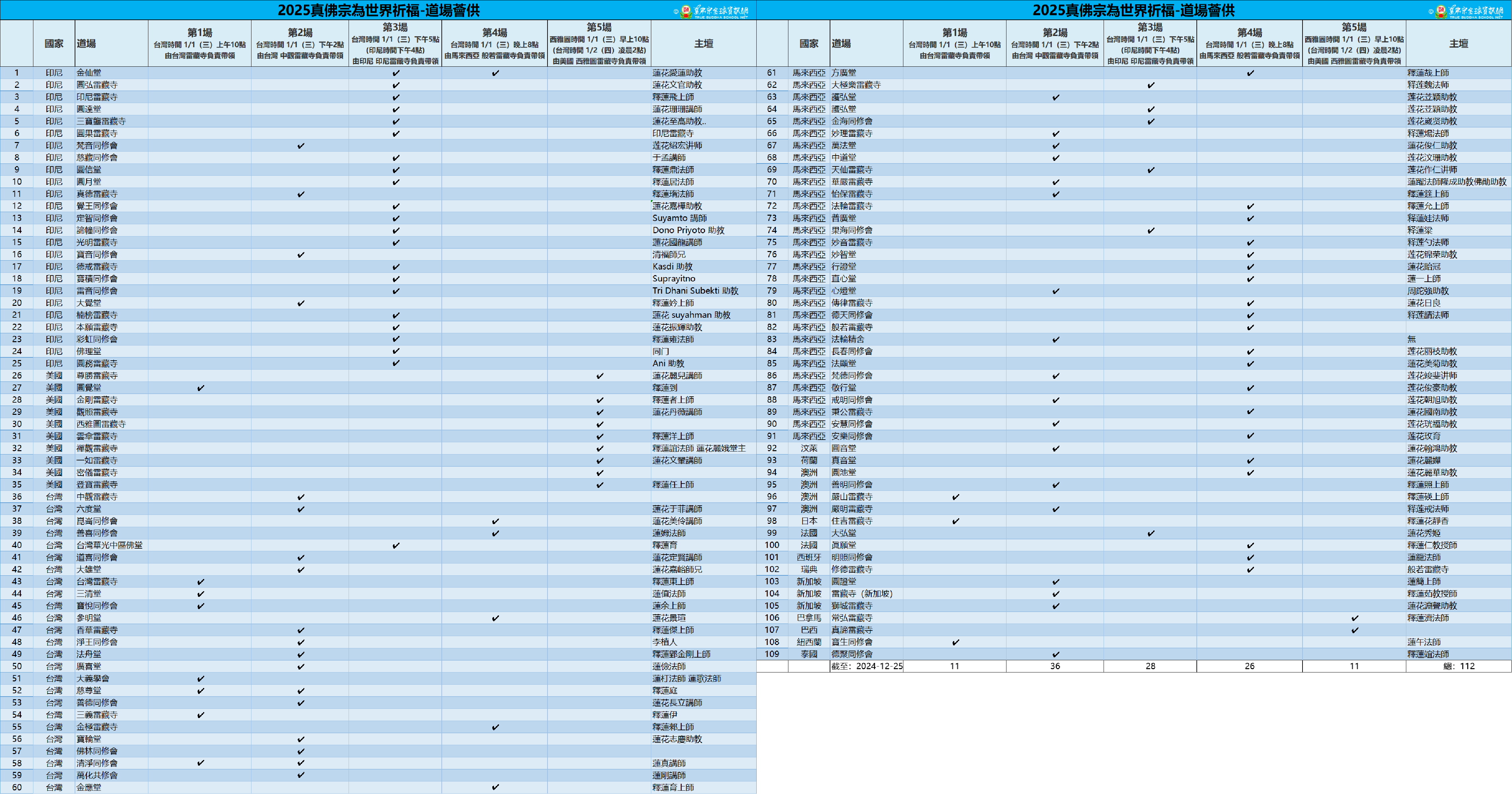 2025年真佛宗道場為世界祈福請佛住世瑤池金母薈供名單和時段 (截至2024/12/25)