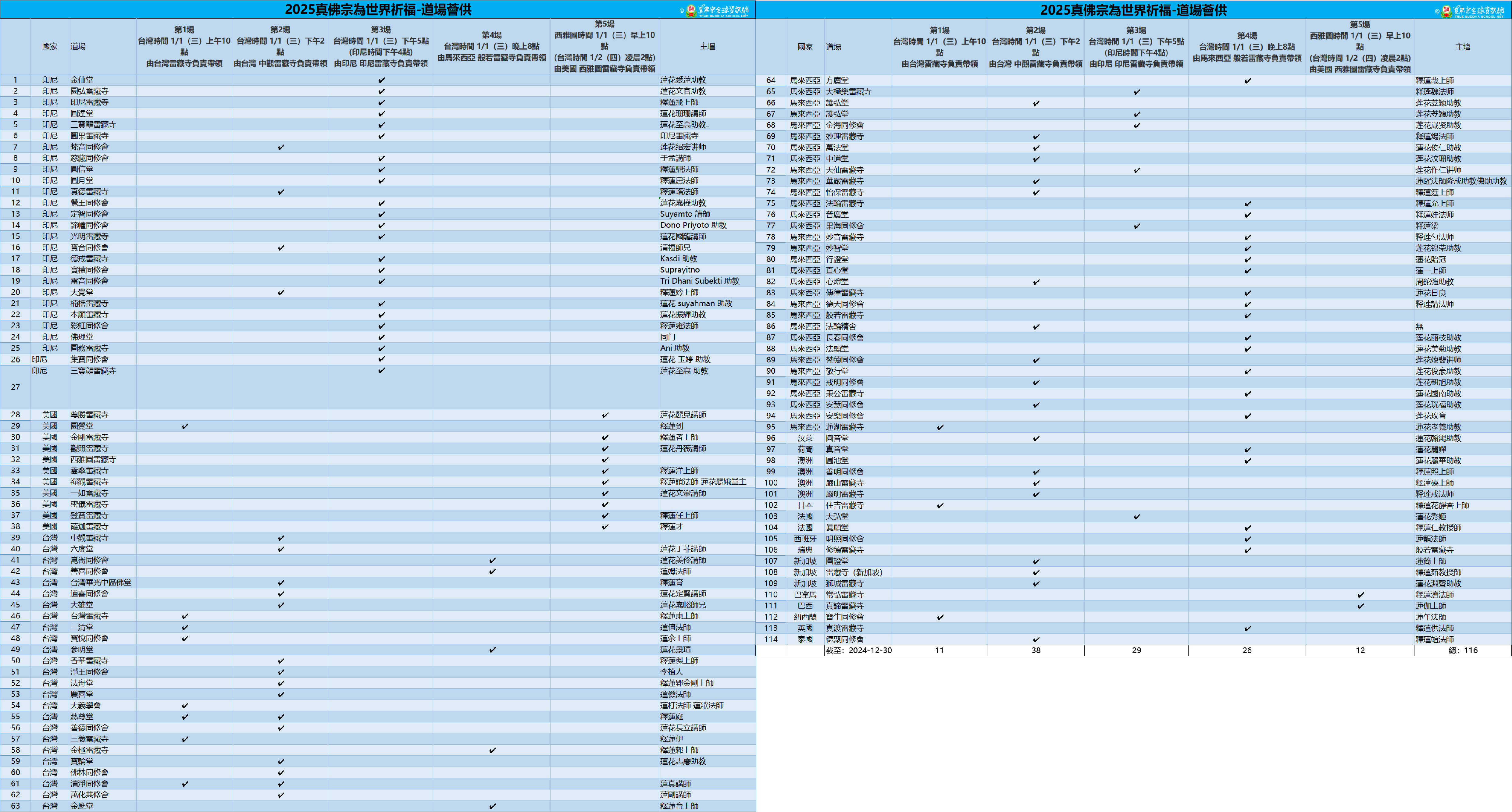 2025年真佛宗道場為世界祈福請佛住世瑤池金母薈供名單和時段 (截至2024/12/30)