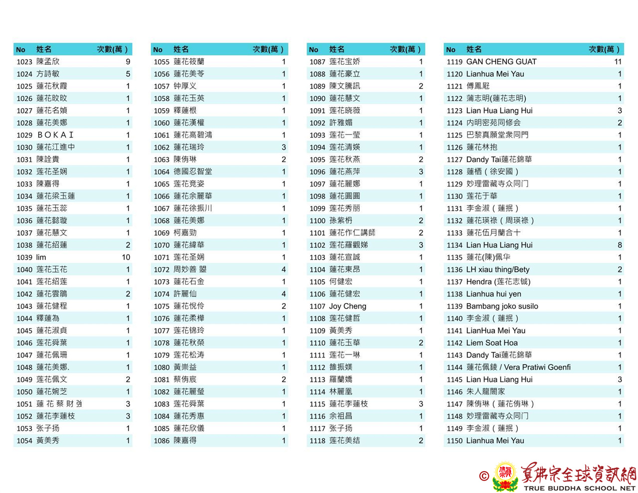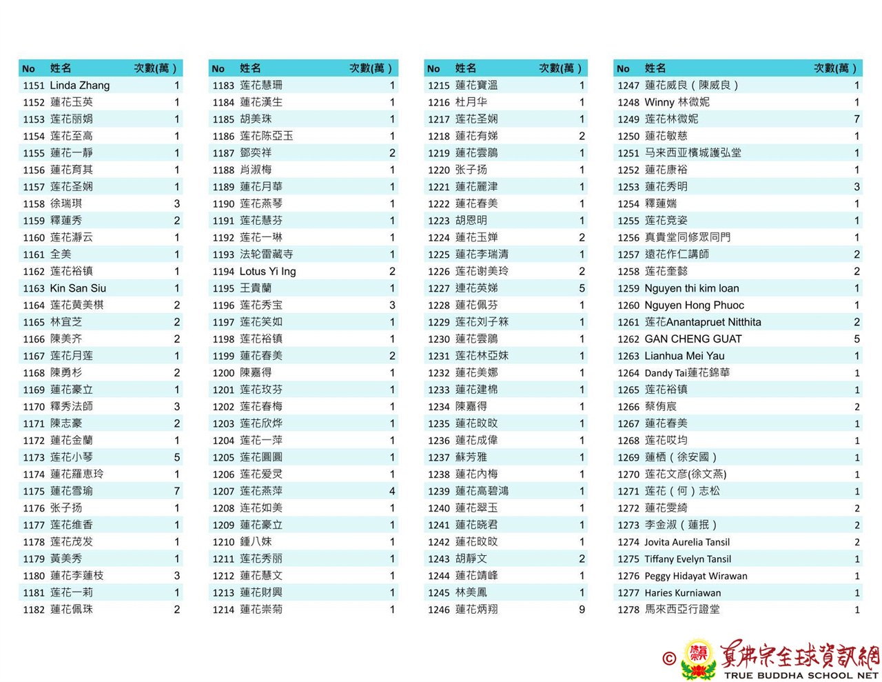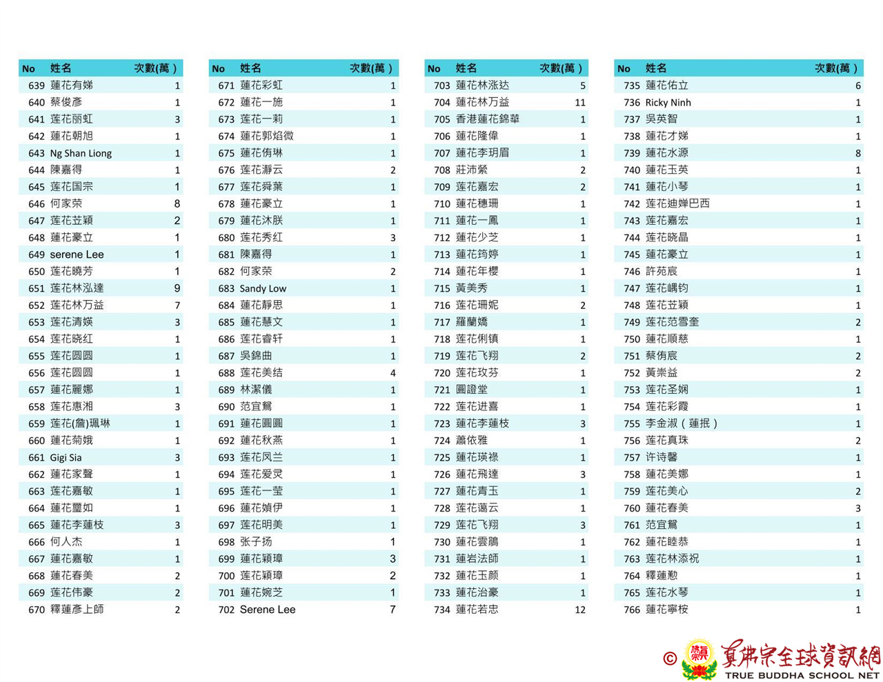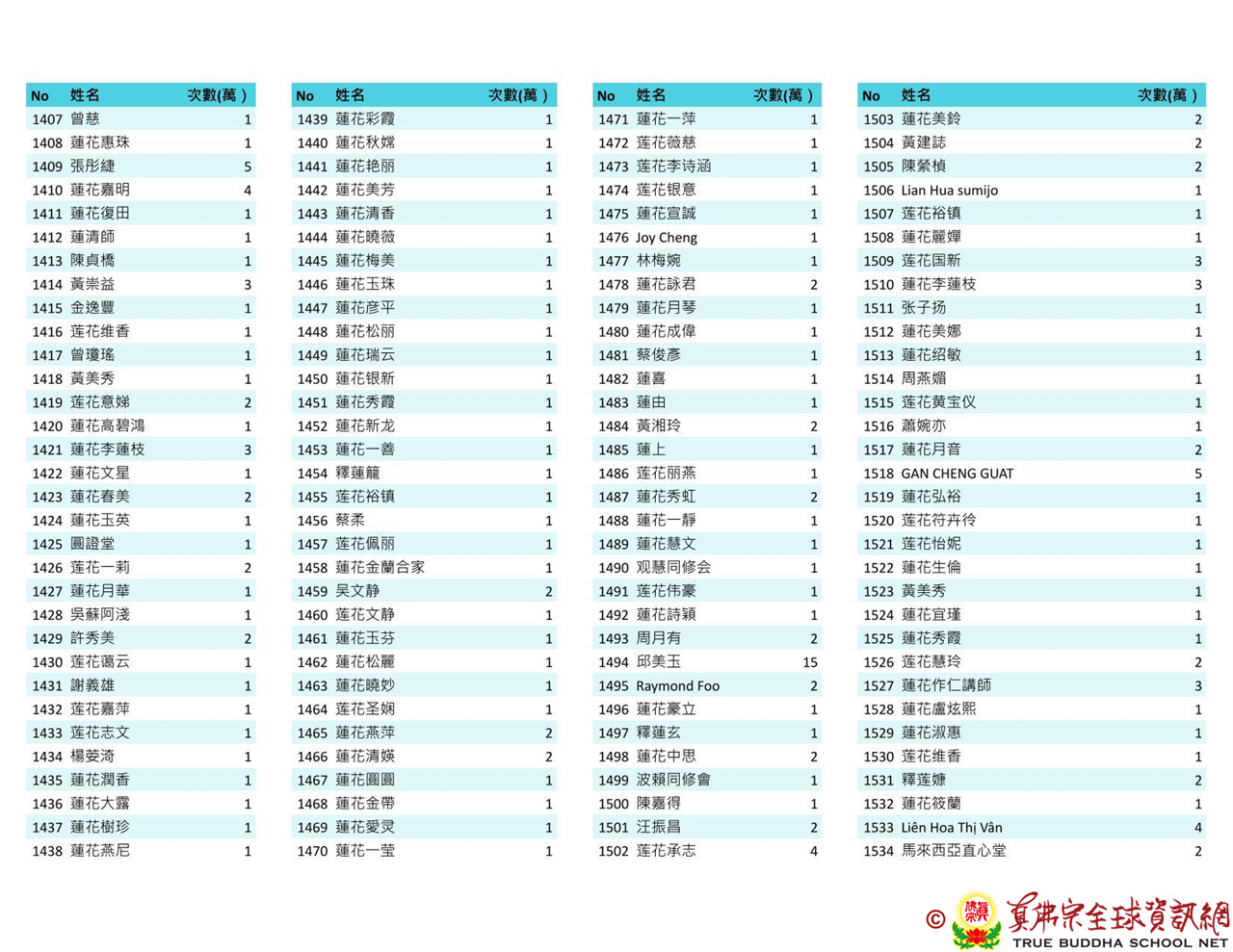持誦金母心咒迴向師佛 全球真佛弟子一心持誦瑤池金母心咒 祈求瑤池金母大天尊光明守護師佛。 截至2025/05/04日下午,持誦瑤池金母心咒累積數目已達4028萬遍,在此呈上目前所登記於真佛宗全球資訊網TBSN的名單。 感謝所有持咒迴向的同門!讓我們再接再厲,以千萬遍金母心咒,向慈悲的無極瑤池金母大天尊祈求,集氣迴向 師佛安康無恙,自在任運! 持咒登記處: https://ch.tbsn.org/event/blessing2025