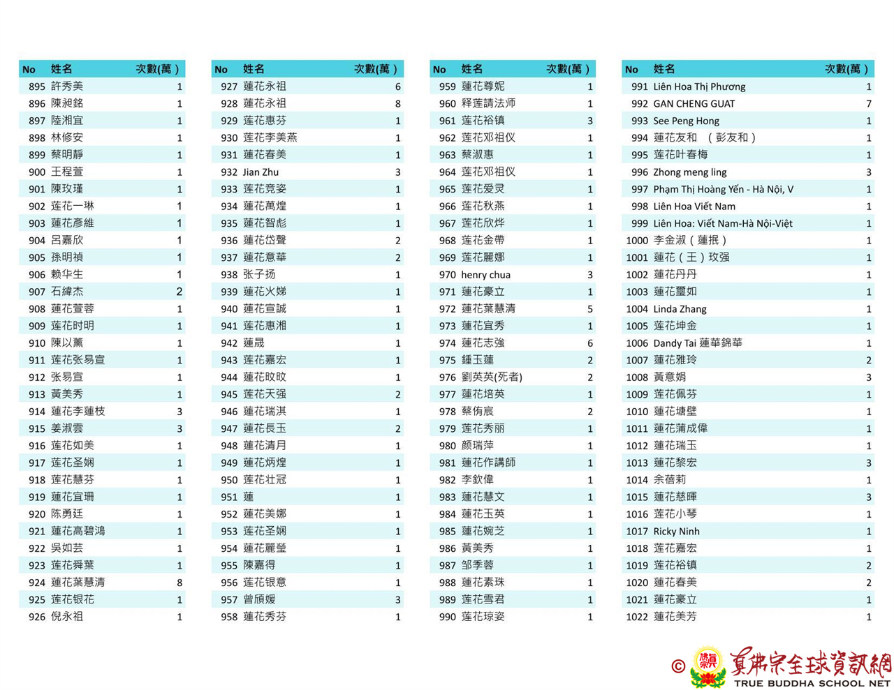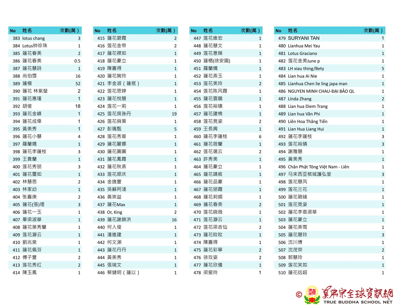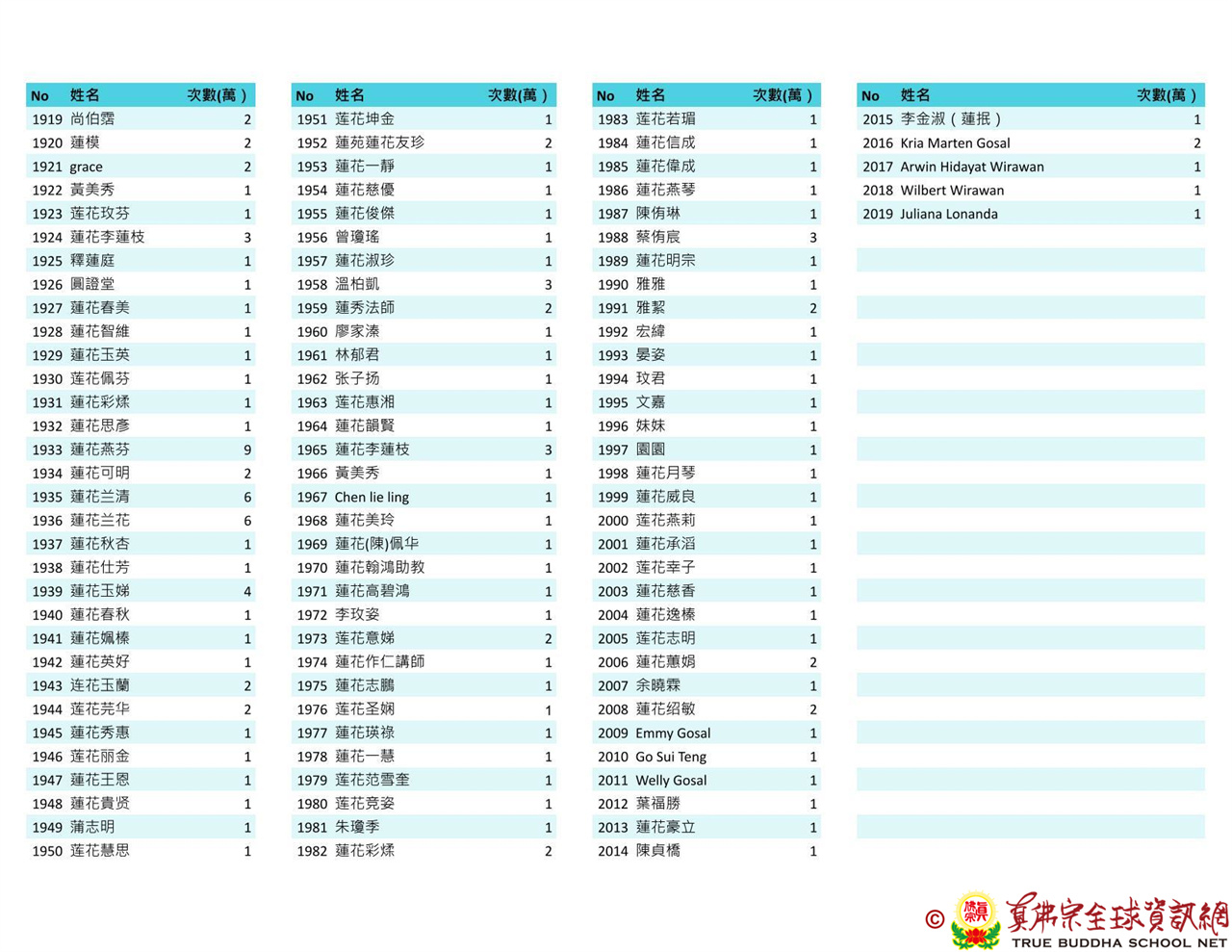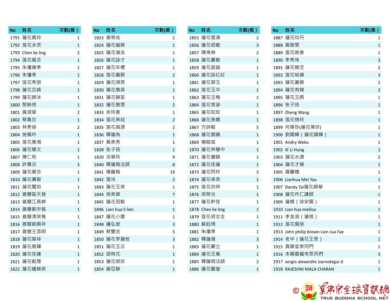 持誦金母心咒迴向師佛 全球真佛弟子一心持誦瑤池金母心咒 祈求瑤池金母大天尊光明守護師佛。 截至2025/05/04日下午,持誦瑤池金母心咒累積數目已達4028萬遍,在此呈上目前所登記於真佛宗全球資訊網TBSN的名單。 感謝所有持咒迴向的同門!讓我們再接再厲,以千萬遍金母心咒,向慈悲的無極瑤池金母大天尊祈求,集氣迴向 師佛安康無恙,自在任運! 持咒登記處: https://ch.tbsn.org/event/blessing2025