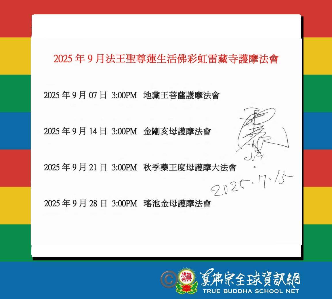 2025年08月及09月法王聖尊蓮生活佛彩虹雷藏寺護摩法會