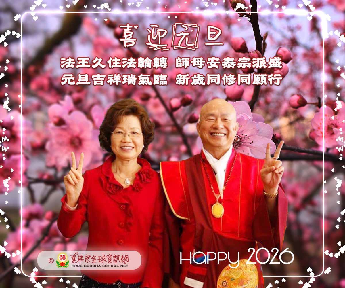 法王久住法輪轉 師母安泰宗派盛 元旦吉祥瑞氣臨 新歲同修同願行 敬祝盧師尊師母與真佛宗同門元旦快樂!