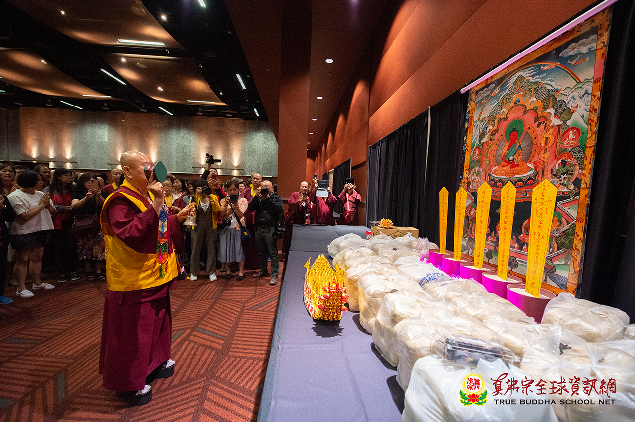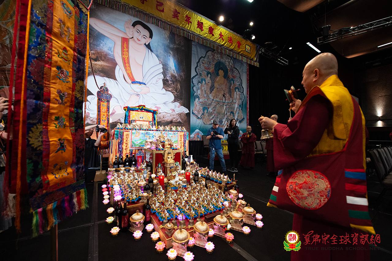 2019年8月23日晚上,西雅圖秋季大法會前夕,蓮生法王於梅登堡會議中心法會會場加持壇城。