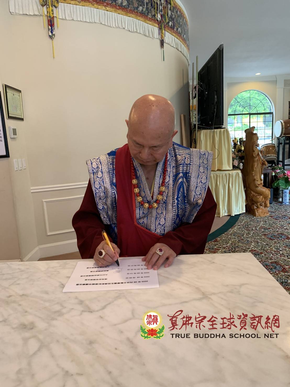 2020年9月法王聖尊蓮生活佛彩虹雷藏寺護摩法會 -- 法王簽名與加持