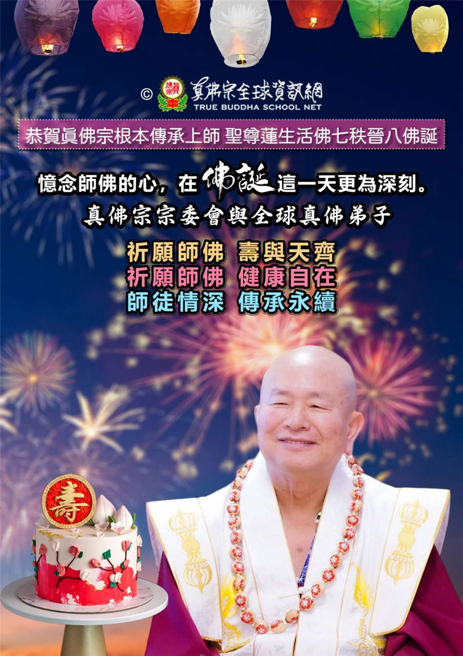 2022年農曆5月18日,真佛宗根本傳承上師 聖尊蓮生活佛七秩晉八佛誕正日,真佛宗全球弟子願以此真佛經功德迴向 師佛健康長壽,長住世間,永轉法輪!