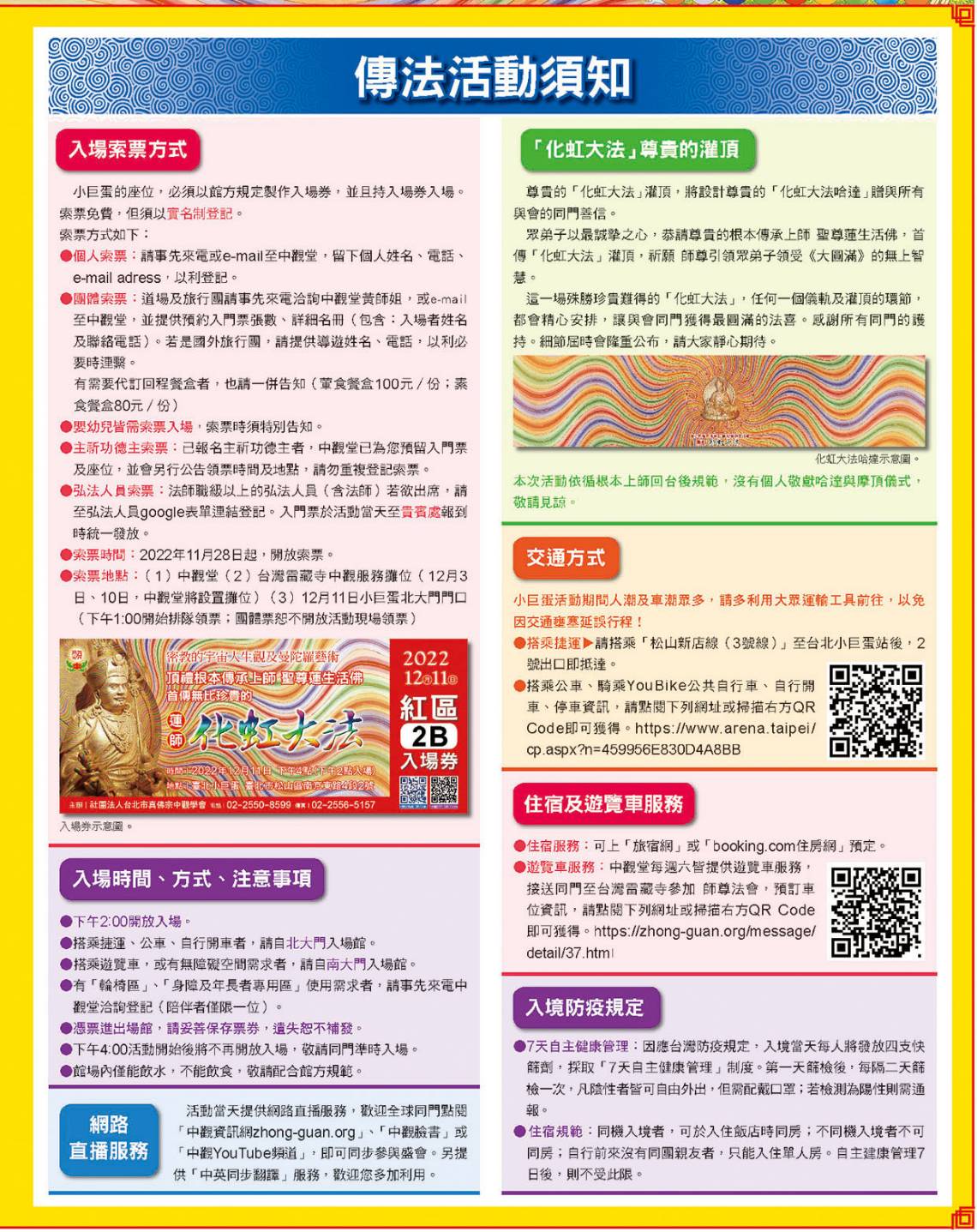 化虹大法法義、主祈功德主方案、報名方式、館場示意圖,請詳見《中觀雜誌》「化虹大法專刊」