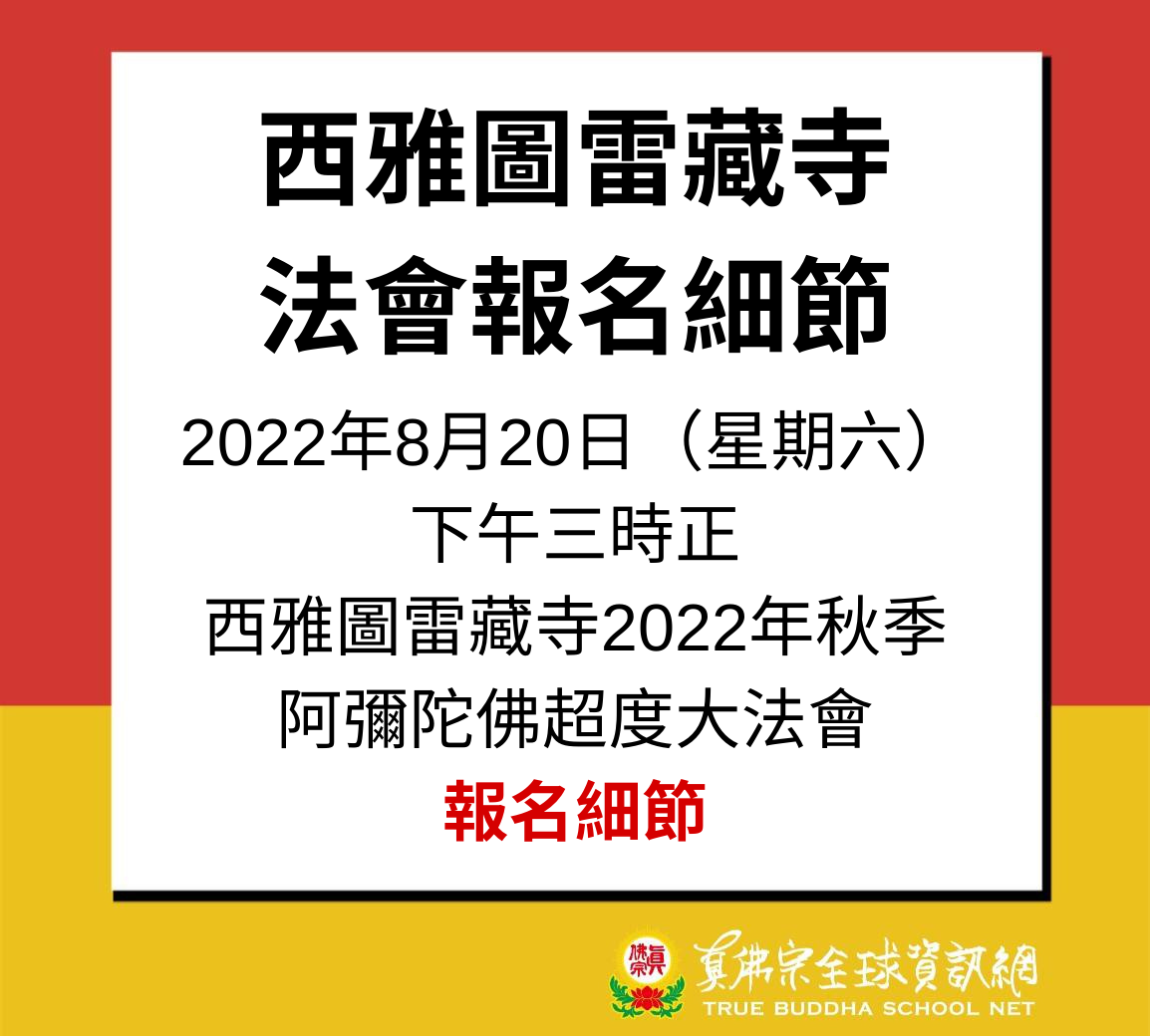 西雅圖雷藏寺法會報名細節 根本傳承上師聖尊蓮生活佛 千艘法船的救度