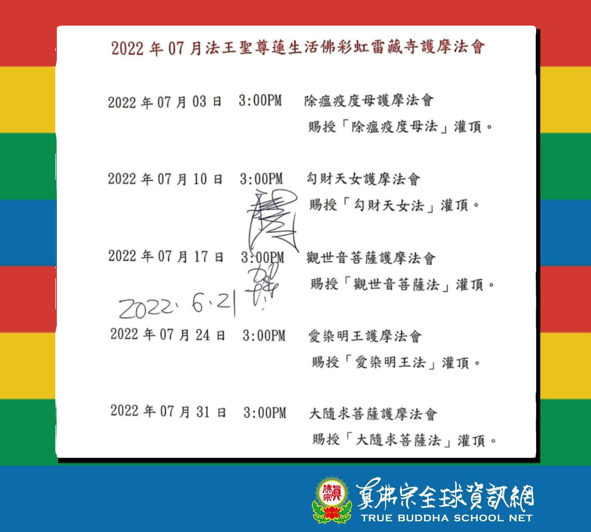 2022年7月法王聖尊蓮生活佛彩虹雷藏寺護摩法會 真佛宗