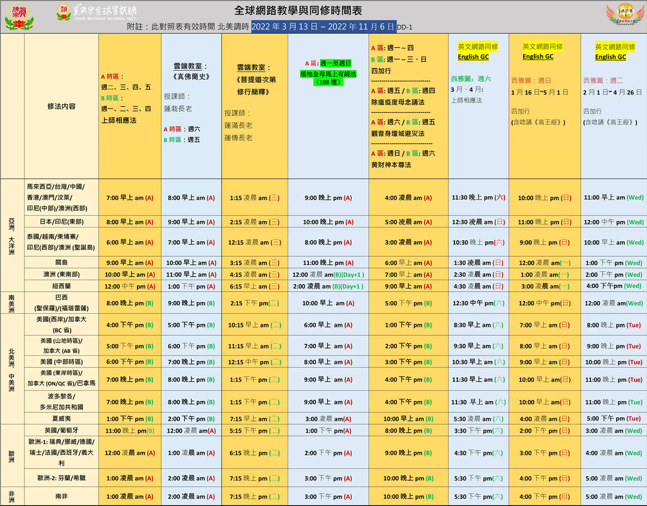 宗委會通告 教育處真佛網路同修時間表