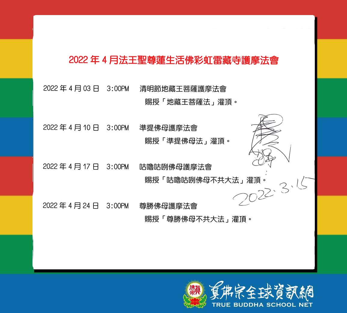 2022年4月法王聖尊蓮生活佛彩虹雷藏寺護摩法會