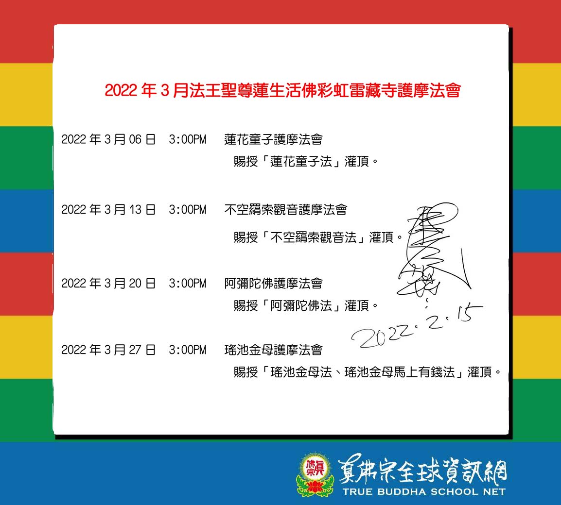 2022年3月法王聖尊蓮生活佛彩虹雷藏寺護摩法會