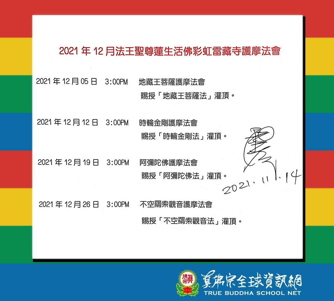 2021年12月法王聖尊蓮生活佛彩虹雷藏寺護摩法會