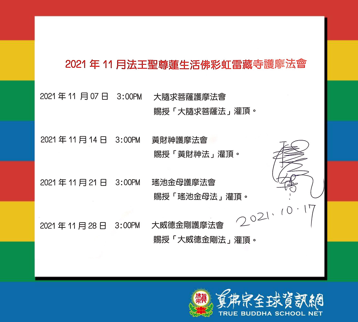 日期:2021/10/07 地點:彩虹雷藏寺 07:00(台灣時間)