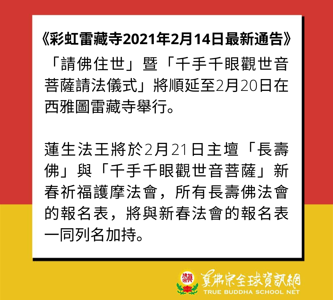 日期:2021/02/19 地點:彩虹雷藏寺 14:00(台灣時間)