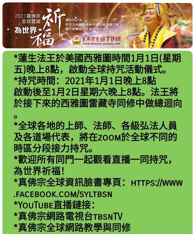 日期:2021/01/07 地點:彩虹雷藏寺 15:00(台灣時間)