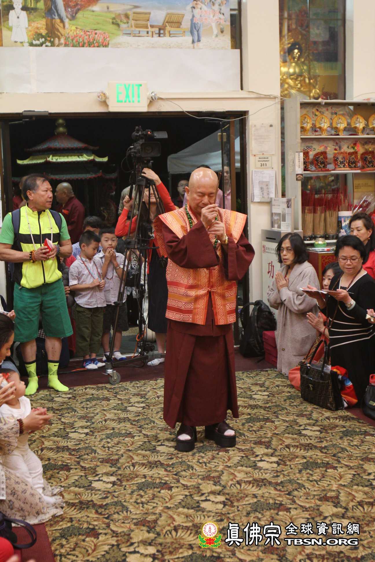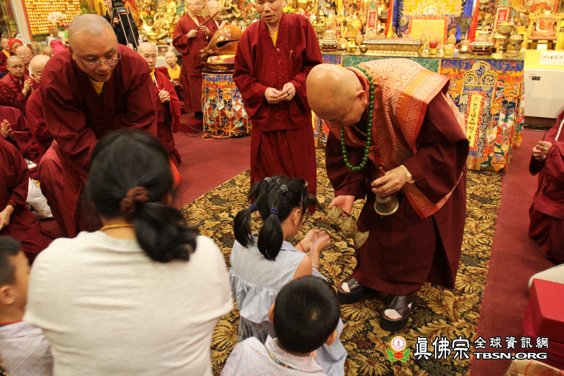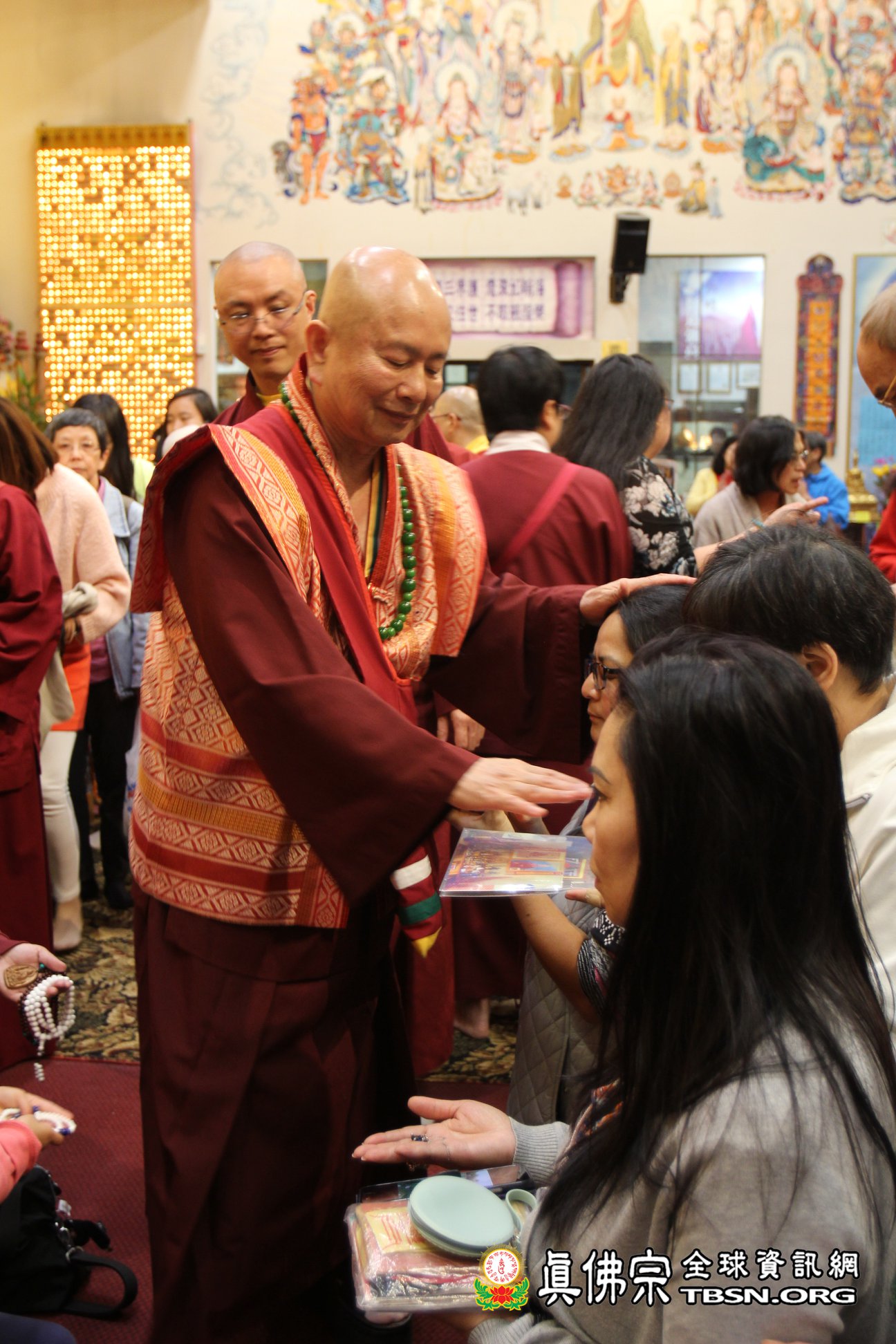 會後,聖尊為大眾賜授皈依灌頂、加持大悲咒水及佛像開光。離開雷藏寺前,聖尊還不辭辛勞為善信大眾摩頂加持。步出廟門,佛青闔家、佛奇闔家來到祖廟等候師尊、師母,現場勾勒出一幅天倫和樂的溫馨畫面,美麗的夜晚,瀰漫著溫馨的親情,為今晚劃上了最圓滿的句點。