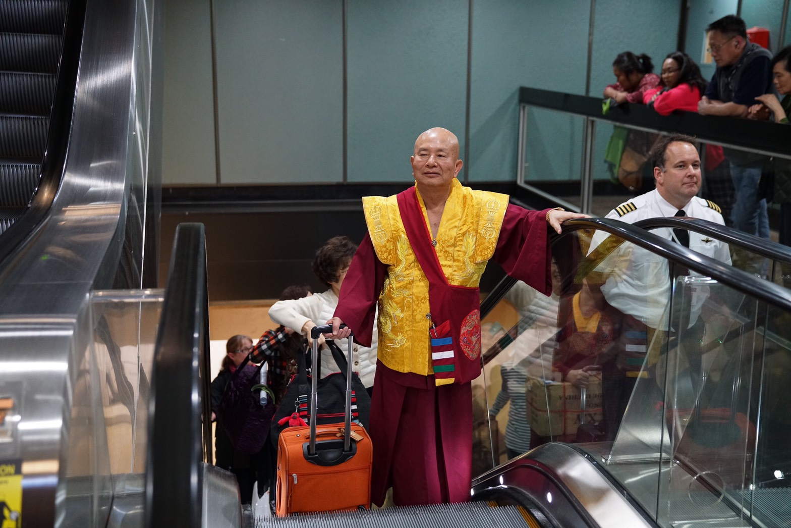 隨著航班訊息顯示抵達後,西雅圖機場的候機大廳,無不充斥著興奮、歡喜、愉悅的氛圍,每個人臉上都有著藏不住的喜悅,大家都開始等待著手扶梯那端出現的曙光。蓮生活佛 盧勝彥曾說:『我心中的佛,不是一顆遙遠的孤星。我心中的佛,是思念眾生,擁抱眾生。』無論光陰如何流逝、歲月穿梭之下,念念不忘、必有迴響!
