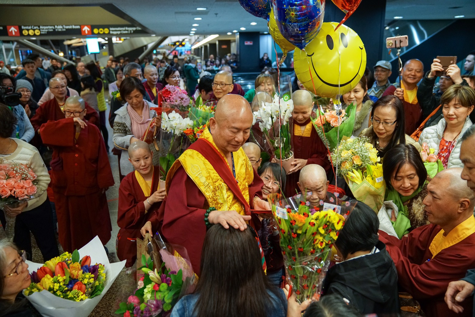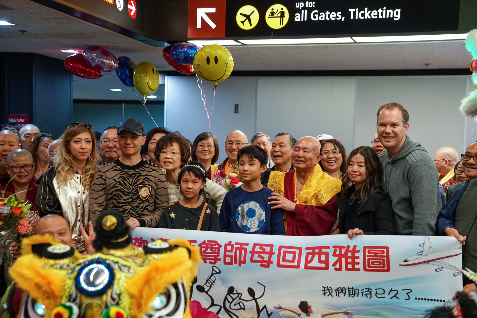 2017年5月7日蓮生活佛、師母蓮香上師從台灣返西雅圖,眾弟子機場列隊恭迎