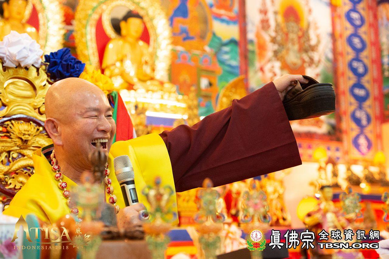 關於阿底峽尊者的介紹,聖尊繼續闡釋:「知母心」,像師尊幼年非常難養育,要不是母親餵米麩,如何成長。師尊小時候愛哭泣,但是,母親抱著自己去看星星,就停止哭泣。母親的心,是完全的奉獻。 除了知恩還要懂得報恩。最重要一點,還要「自他互換心」。 我們看到老人駝背,拿著點滴瓶在醫院走,在「自他互換」之下的觀照,我們會產生悲憫心。