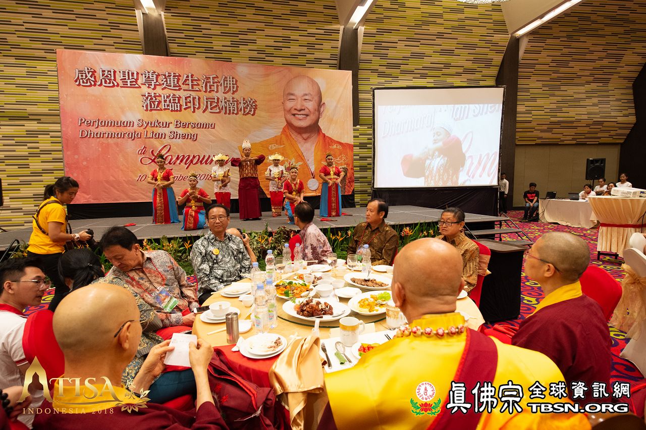 印尼楠榜同門喜迎佛 【#TBSN簡報】 2018年12月10日,蓮生法王與弟子們又風塵僕僕的從萬鴉老飛到楠榜。由於飛機誤點,抵達晚宴會場時已是晚上八點。感恩宴以迎賓舞開場,主席致詞表示感恩。楠榜雷藏寺及另外三個道場的同門,寶積同修會、寶施同修會及寶藏同修會皆一同參與晚宴。 雖然相聚匆匆,總算也圓了當地弟子想多見聖尊一面的心願,期待隔天早上7點半的開光儀式!
