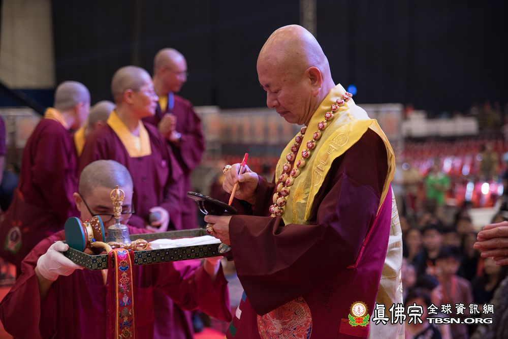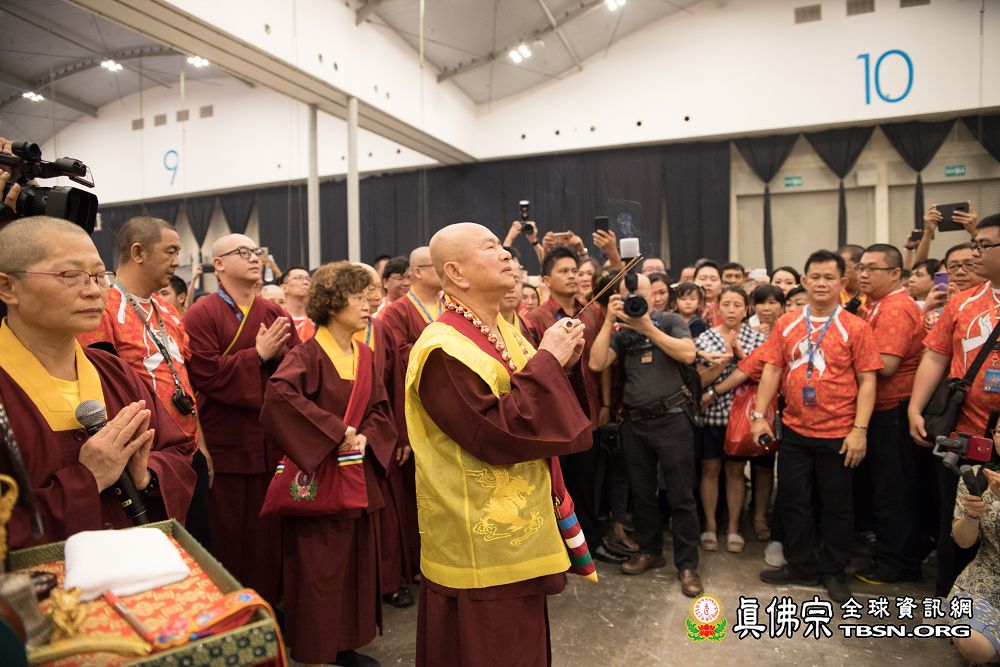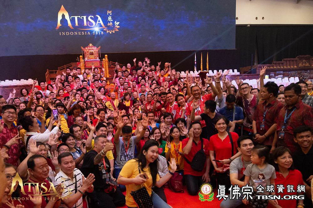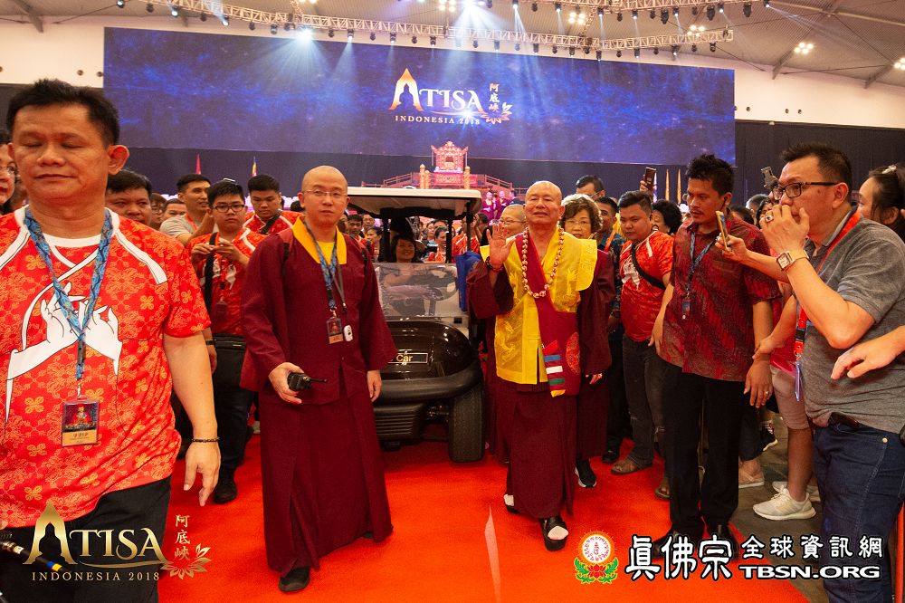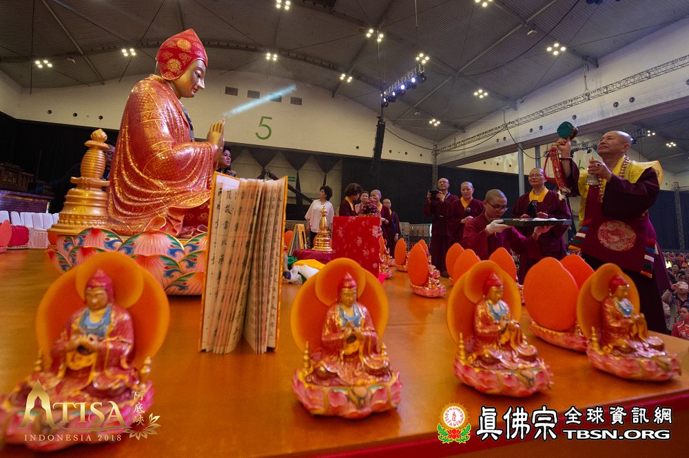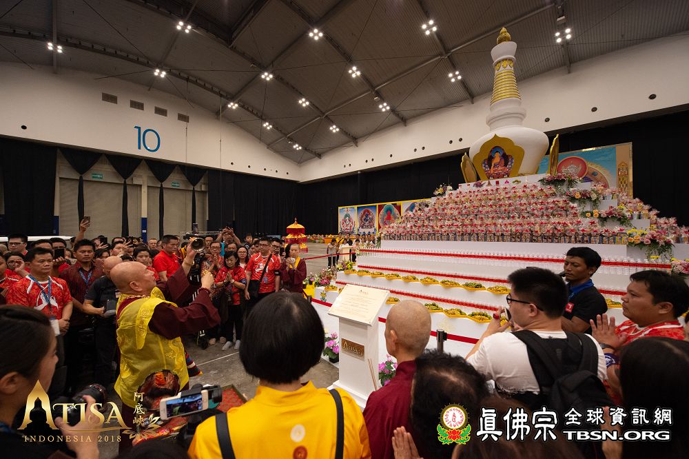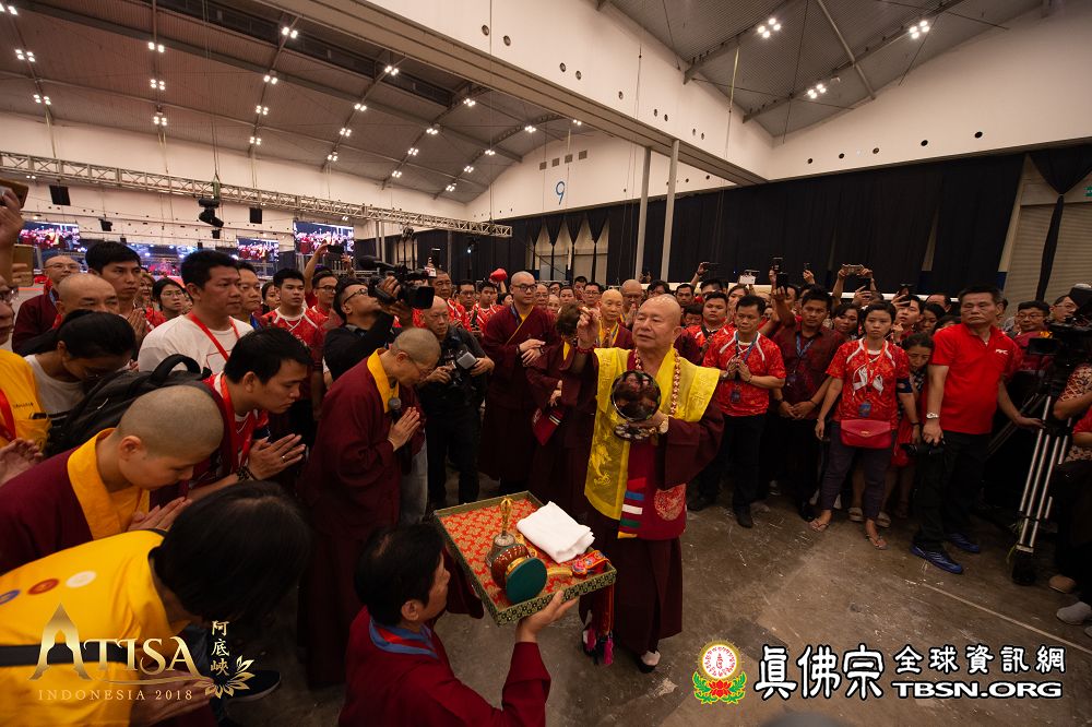 2018年12月7日晚上,蓮生法王蒞臨阿底峽尊者法會會場,為大法會壇城及殊勝無比的「真佛傳承噶當佛塔」開光,並加持義工們與會場群眾。