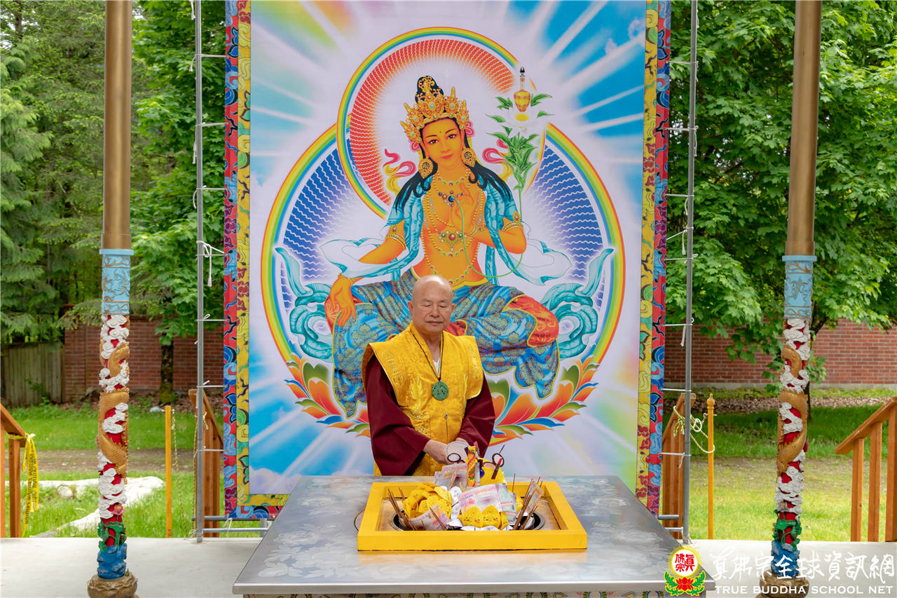 2020年5月17日下午,美國真佛宗西雅圖彩虹雷藏寺恭請根本上師蓮生活佛主壇除瘟疫度母護摩大法會。是日法會非常的殊勝,法王告訴大家,當祂比除瘟疫度母的手印時,每一尊的度母排成一條直線化為光點,降到祂的身上,「包括了綠度母、白度母、二十一度母、除瘟疫度母,包括了四守方母、八方空行母、二十天的空行母,全部都到,這是非常殊勝的法會!」
