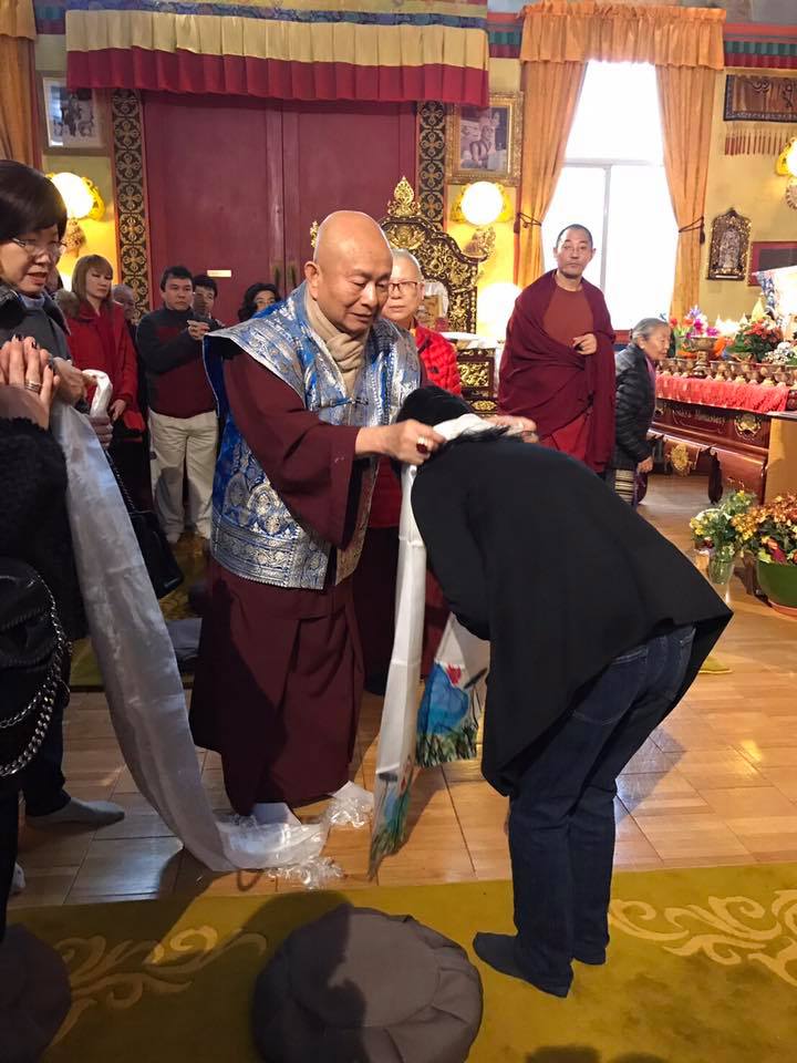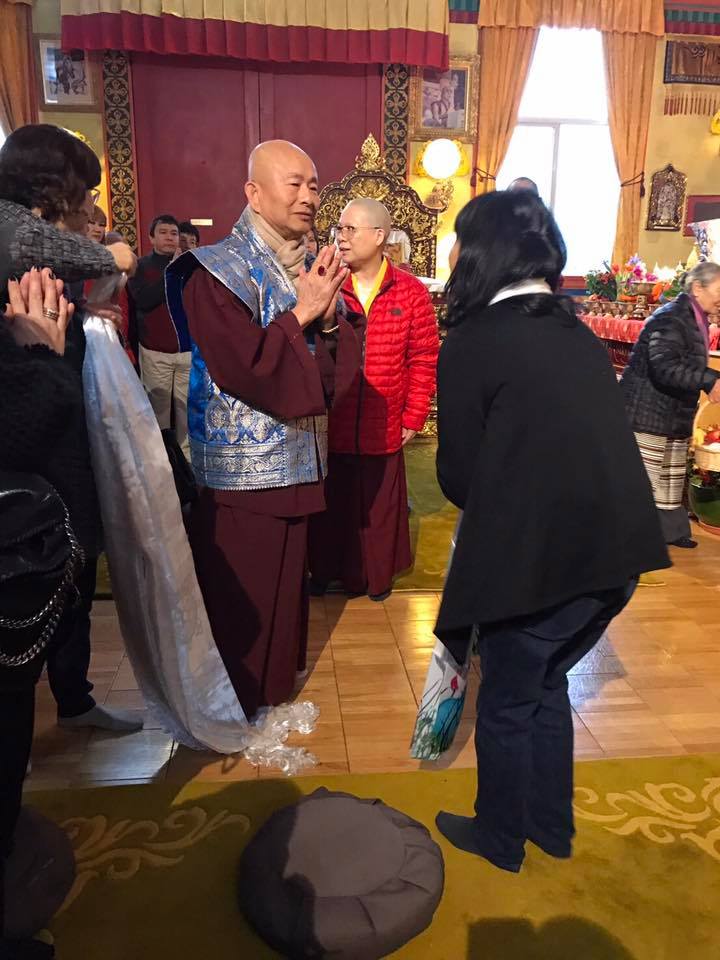 Tulku Yeshi仁波切代表薩迦寺致歡迎詞,他表示對於蓮生活佛前來薩迦寺瞻禮達青法王,感到很榮幸,達青法王是第一位來美國傳授藏傳密法的人。並說,他知道蓮生活佛曾經得到薩迦寺上師傳授密法。