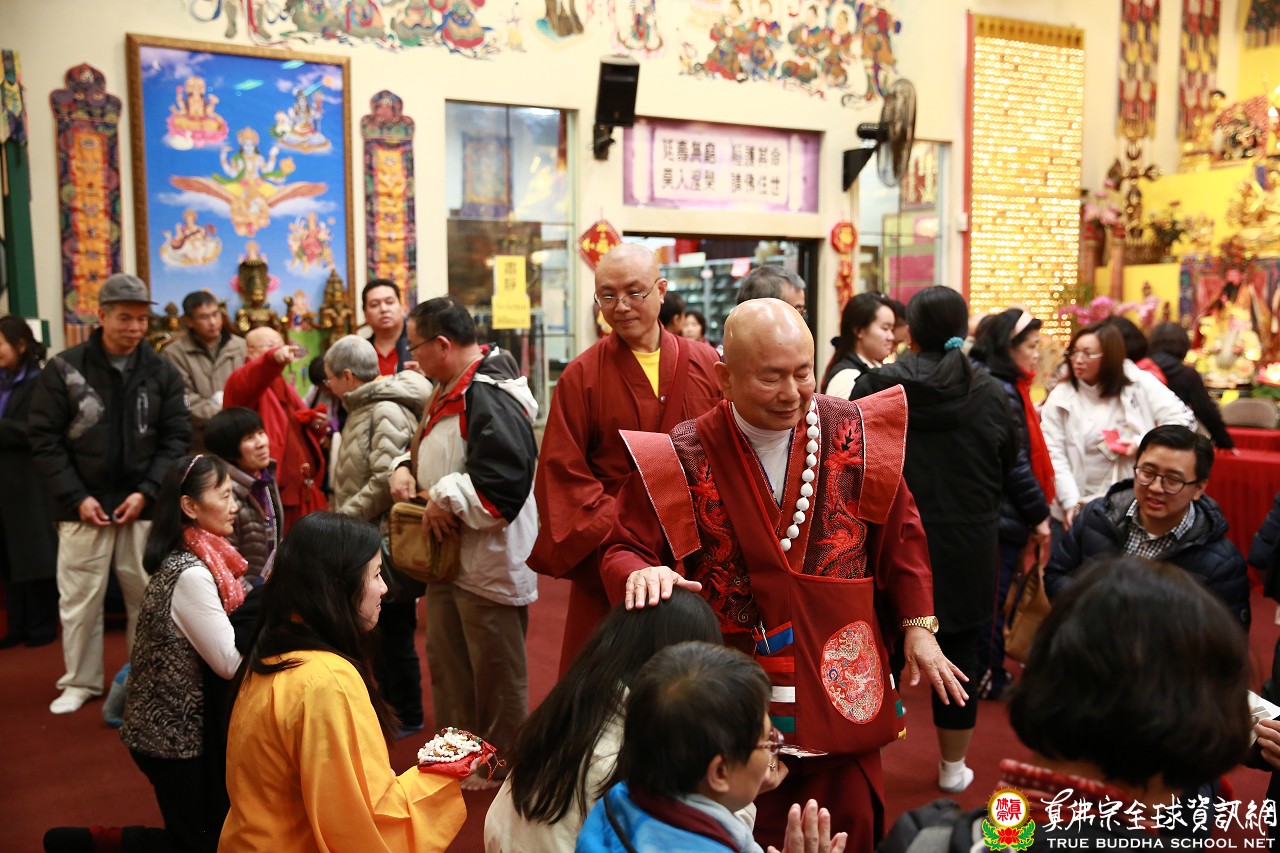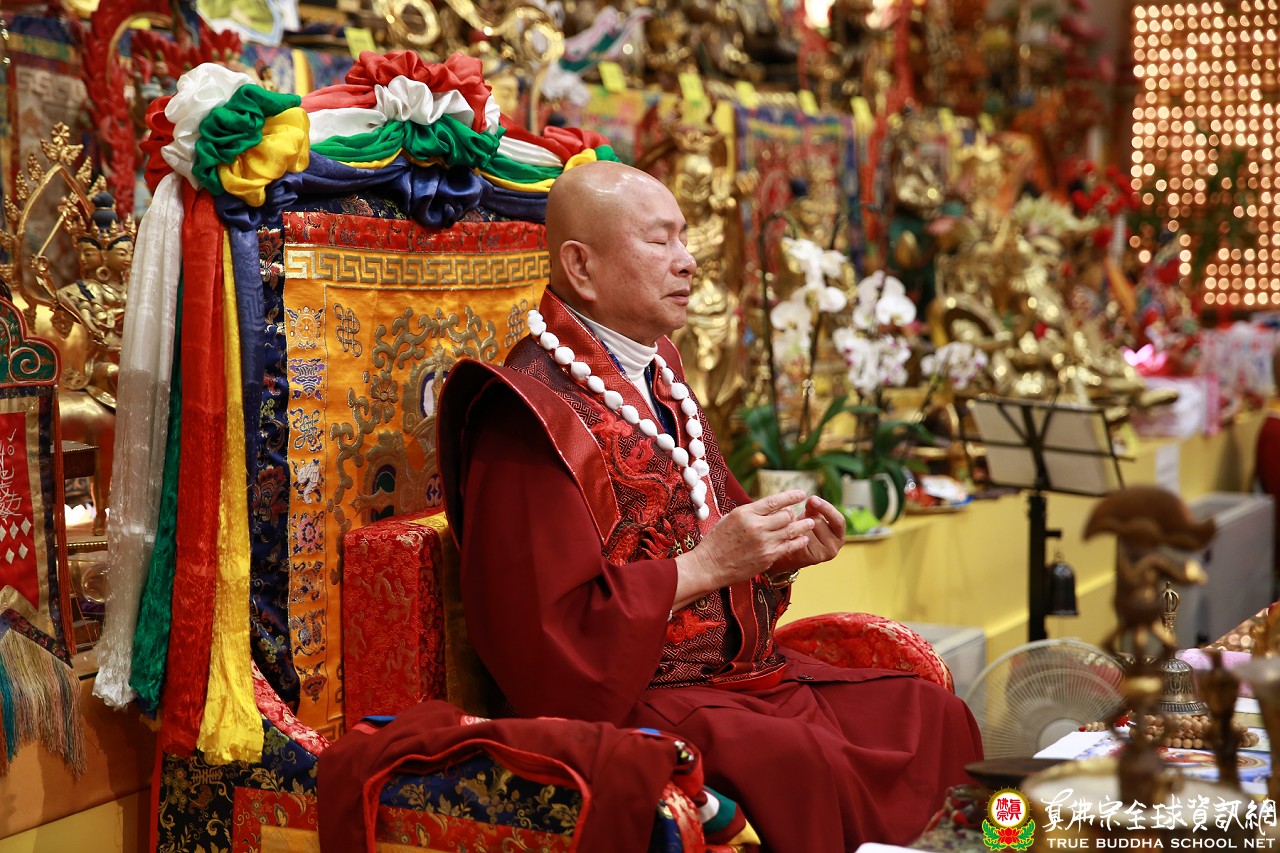 會後,聖尊為大眾賜授受皈依灌頂、加持大悲咒水及開光佛像。離廟前,聖尊為與會善信一一摩頂加持滿願。聖尊圓滿通達密法,完完全全了然於心,所以能精確闡釋深奧的道果法義,深入淺出的教導弟子們。一心禮敬根本傳承上師。