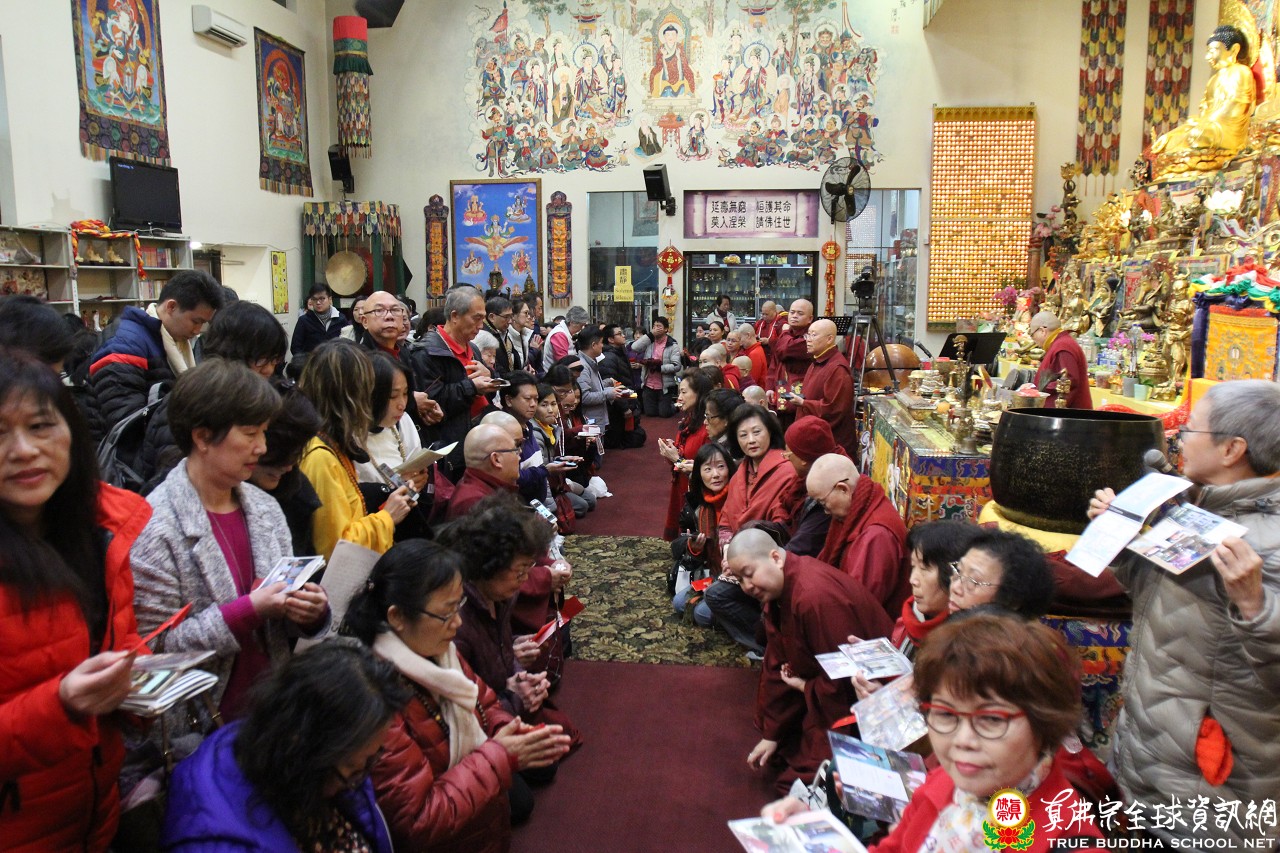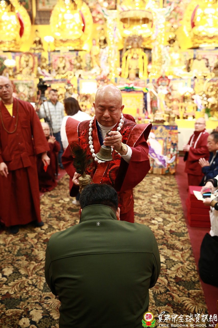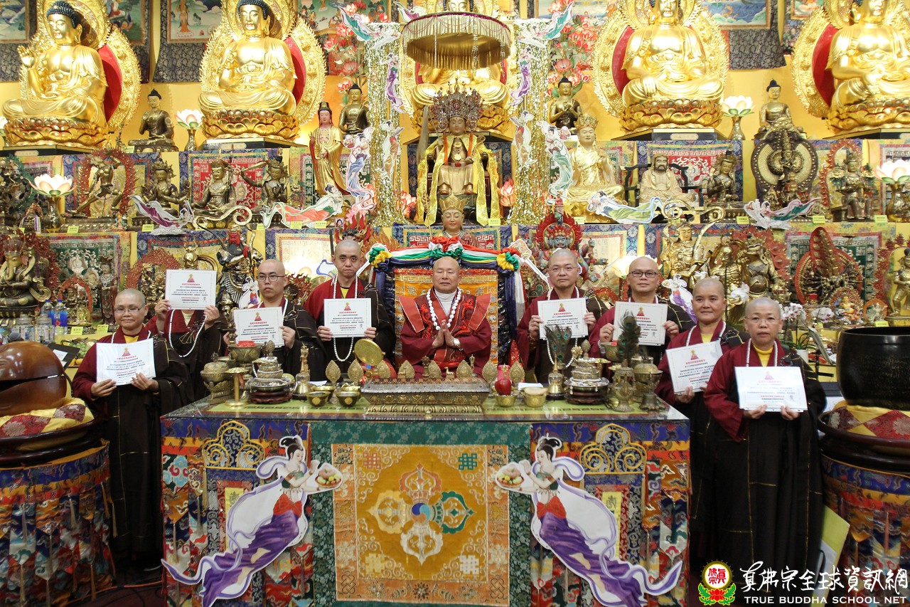 天氣雖然非常寒冷,但弟子們護持聖尊、虔心求法的熱情不減,許多同門仍從世界各地遠來祖廟朝聖。今晚西雅圖雷藏寺的同修主尊是阿彌陀佛。在同修開始前,首先舉行了西雅圖雷藏寺第三十五屆法師研習班結業儀式,本次法師研習班的學員是蓮誰法師、蓮璃法師、蓮唔法師、蓮梁法師、蓮闐法師、蓮卿法師、蓮褐法師、蓮遠法師、蓮唯法師,共九位出家法師,由聖尊頒發結業證書,並且與聖尊合影留念。在眾人的見證之下,隆重的結業儀式禮成,恭喜每一位完成法師研習班的學員,將來都能秉持聖尊的教導,自利利他、自度度他。