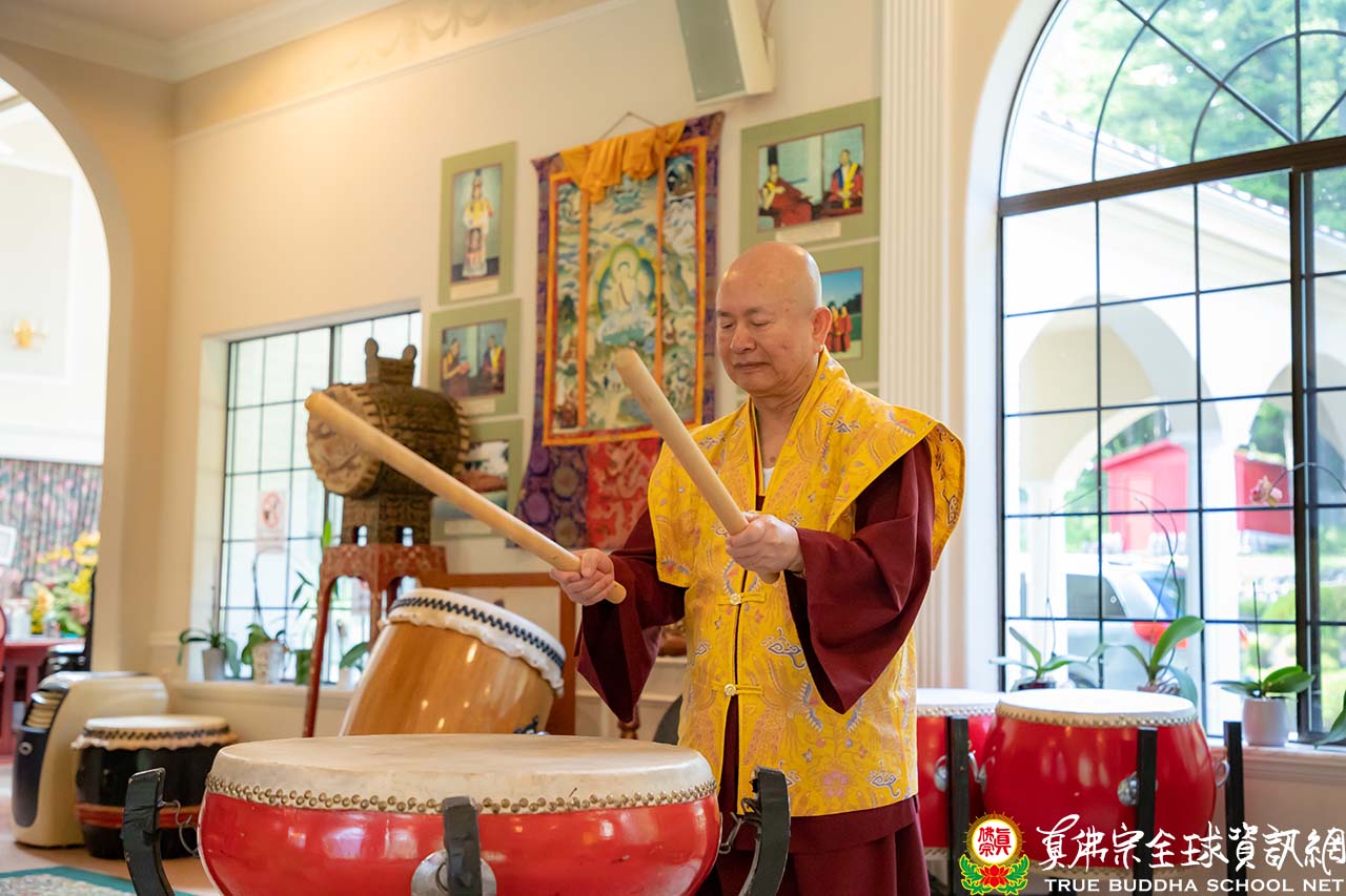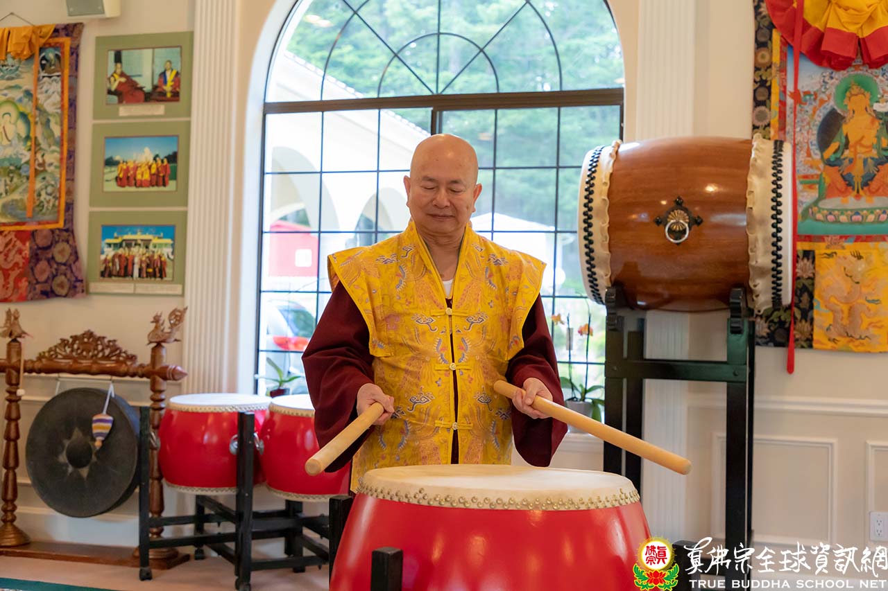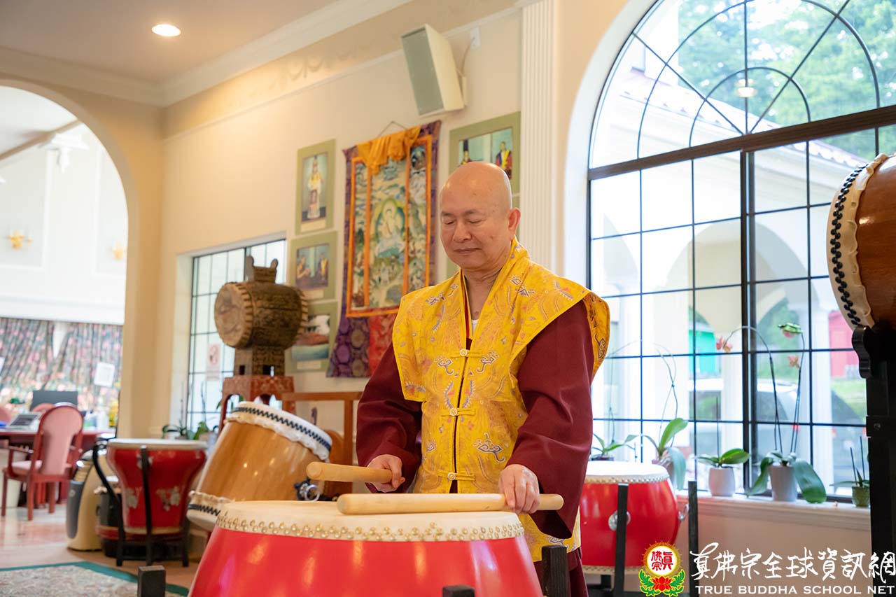 法會後的餘興表演節目,有清歌妙舞夾雜爆笑的笑話;唱歌情感十分投入的師兄,每一首歌都唱得可圈可點,平時正職是程式設計師,但最後被觀眾建議乾脆改行當歌手。一位自稱能模仿鄧麗君和蔡琴的工作人員,一首「甜蜜蜜」也讓師尊師母聽後笑咪咪。最精彩的片段莫過於師尊打鼓加持大眾;第一回用的鼓,師尊才打了幾下就發現鼓皮似乎鬆弛,發出破鼓的聲音。工作人員連忙換新鼓,這回師尊十分專注的鳴鼓達數分鐘之久,鼓音有起承轉合的節奏,扣人心弦,有如上演「擊鼓進軍」至「鳴金收兵」的戲碼,節奏震撼人心;初時鼓聲如輕風吹拂,接著風起雲湧,排山倒海的鼓聲,後時如雷鳴戰鼓,撼動山河,最後班師回朝,天下太平。師尊說祂從沒學過鼓,但很喜歡聽鼓聲,可精進振奮人心。師尊從太鼓、獅鼓、廟會鼓中,混合不同鼓聲元素,編出一套自己的曲目。眾人聞後皆讚嘆師尊的鼓聲,富有深層的藝術表達,必俱宿緣方有如此天分。