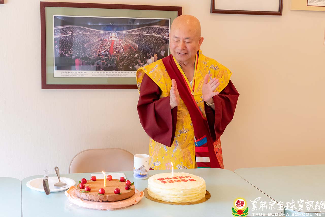 有人問師尊,何以在日蝕和月蝕日,修行功德會增加多倍,師尊答說,確實有這樣的說法,應該是和宇宙日月星辰磁場變動,對身心產生影響有關,借用磁場變強來修某些法能更有力量。師尊舉例,日月蝕持咒,可令穢積金剛杵產生神變;同樣的,日月蝕修虚空藏菩薩求聞持法,更能相應。《蘇悉地經》亦有提到日月蝕修特殊密法容易成就。師尊補充說,密教行法,初一到十五屬於「白月」適合修息災法,十六到三十日是屬於「黑月」適合修降伏法。餐後,工作人員端出兩個大蛋糕,眾人齊拍手合唱祝賀歌,為師尊慶祝父親節。師尊看到恰巧一個是白色榴蓮口味,一個是黑色巧克力,就對師母逗趣說,「白的是我的,黑的給你。」