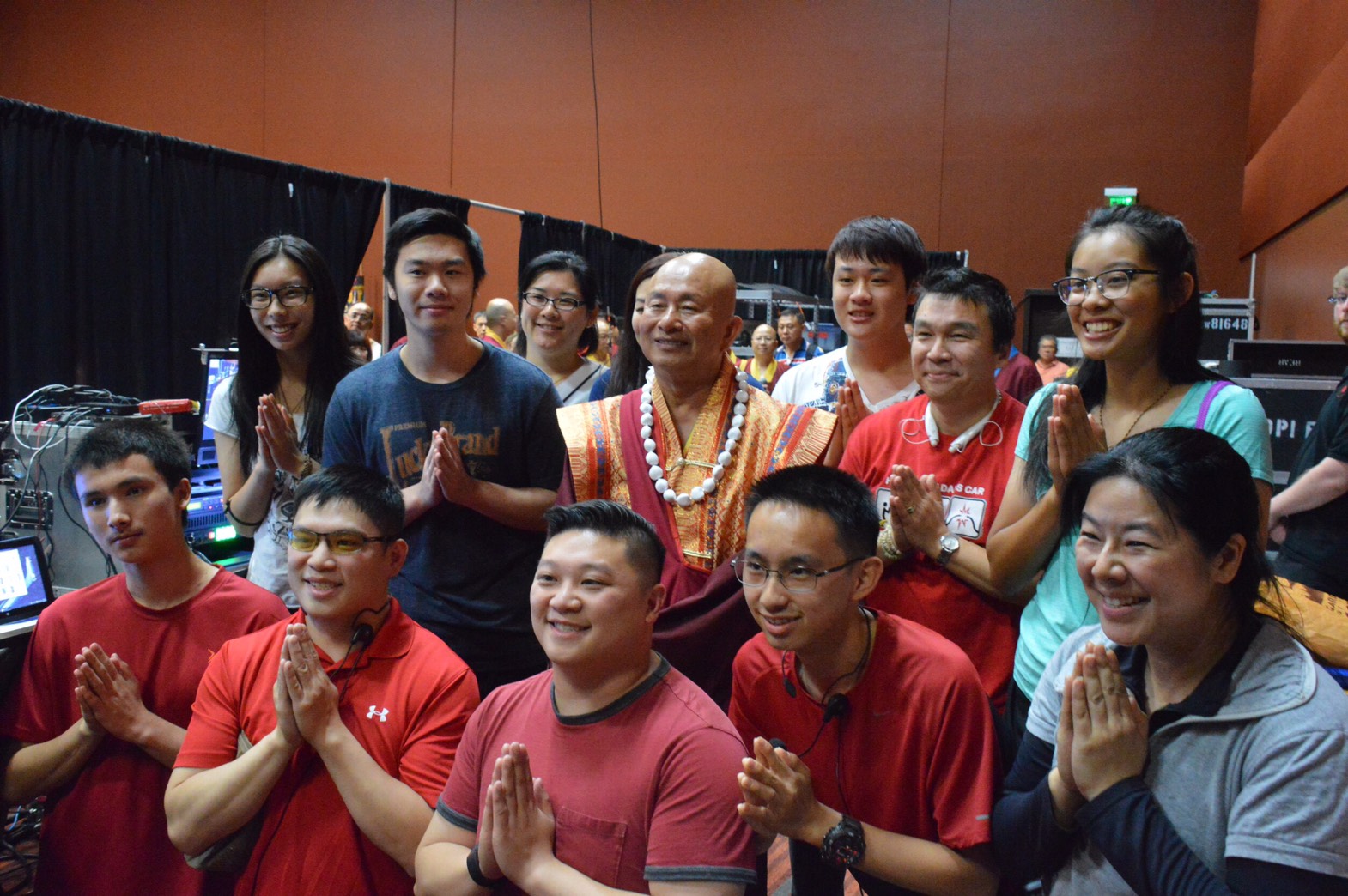 法會公關組的上師和義工也在星期五的下午到會場做相關人等的座位安排。大家齊心協力,務求儘可能將大法會的準備工作做得盡善盡美。師尊也於星期五當晚,前往梅登堡會場巡視,測試現場的影音設備,並加持灌頂幡、壇城佛像、往生位及延生位…..等。
