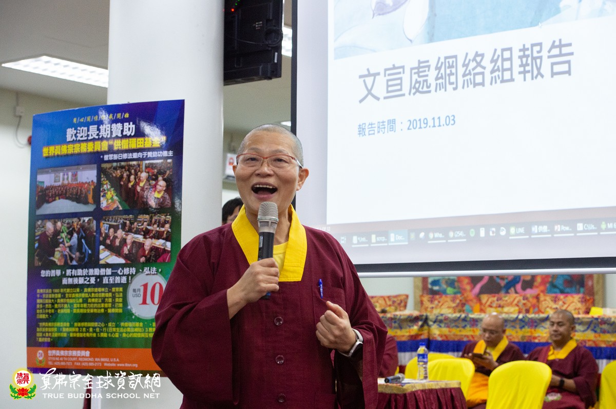 (2)文宣處處長釋蓮悅上師:介紹目前文宣處各單位及網絡媒介,兩場即將來臨的大活動。