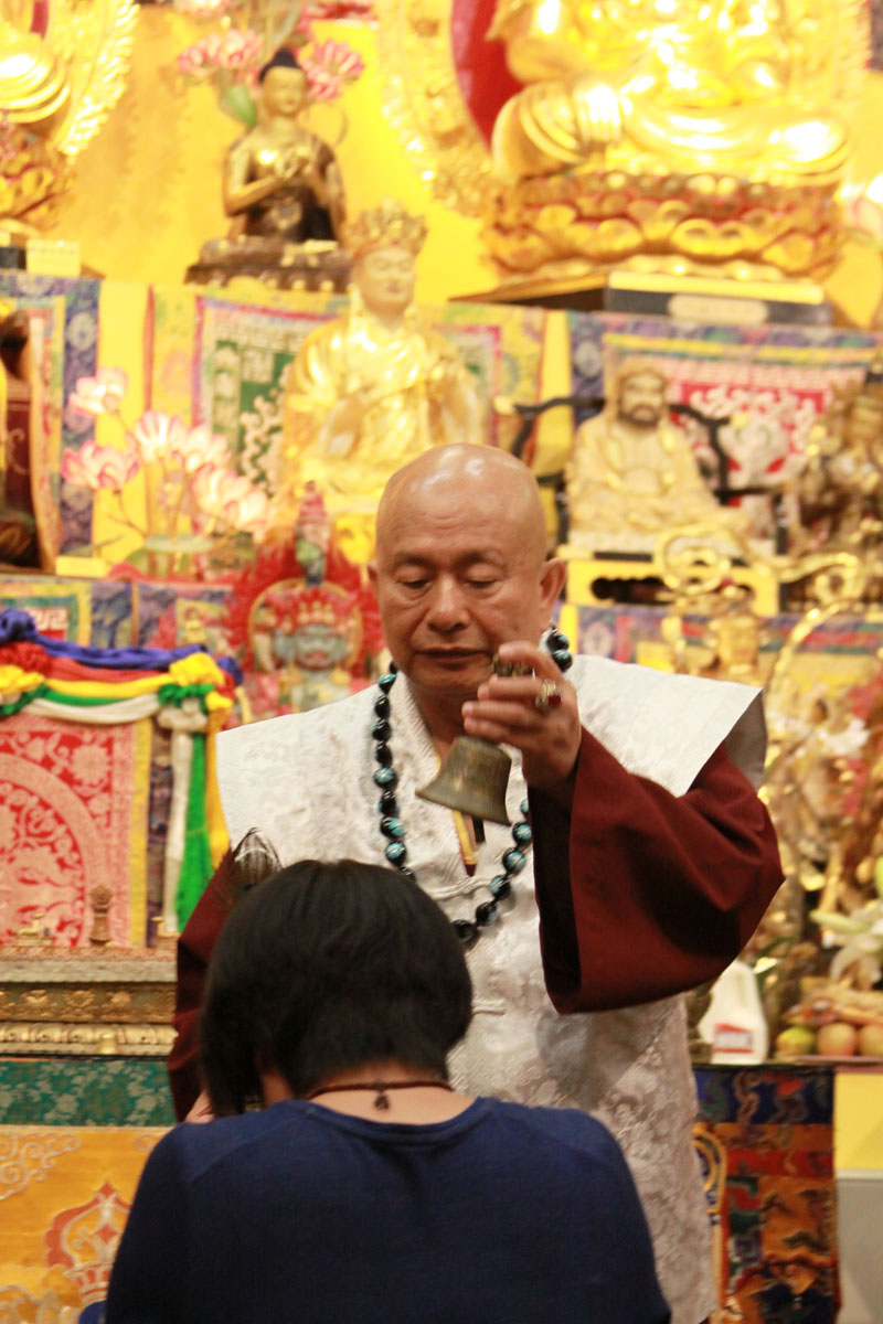 【釋蓮店上師 報導】2016年7月30日在西雅圖雷藏寺主持「蓮花童子本尊法」。同修後,蓮生活佛首先談到以前是沒有聽過「蓮花童子」,很多佛教的人也都不知道有「蓮花童子」;「童子」也是「大士」、「菩薩」的意思。「童子」之意,代表沒有邪念,很純潔之意。
