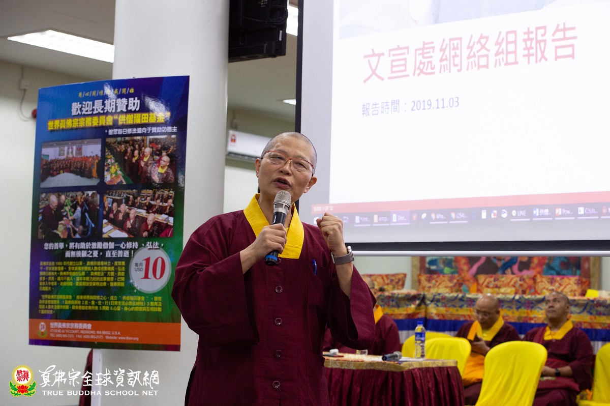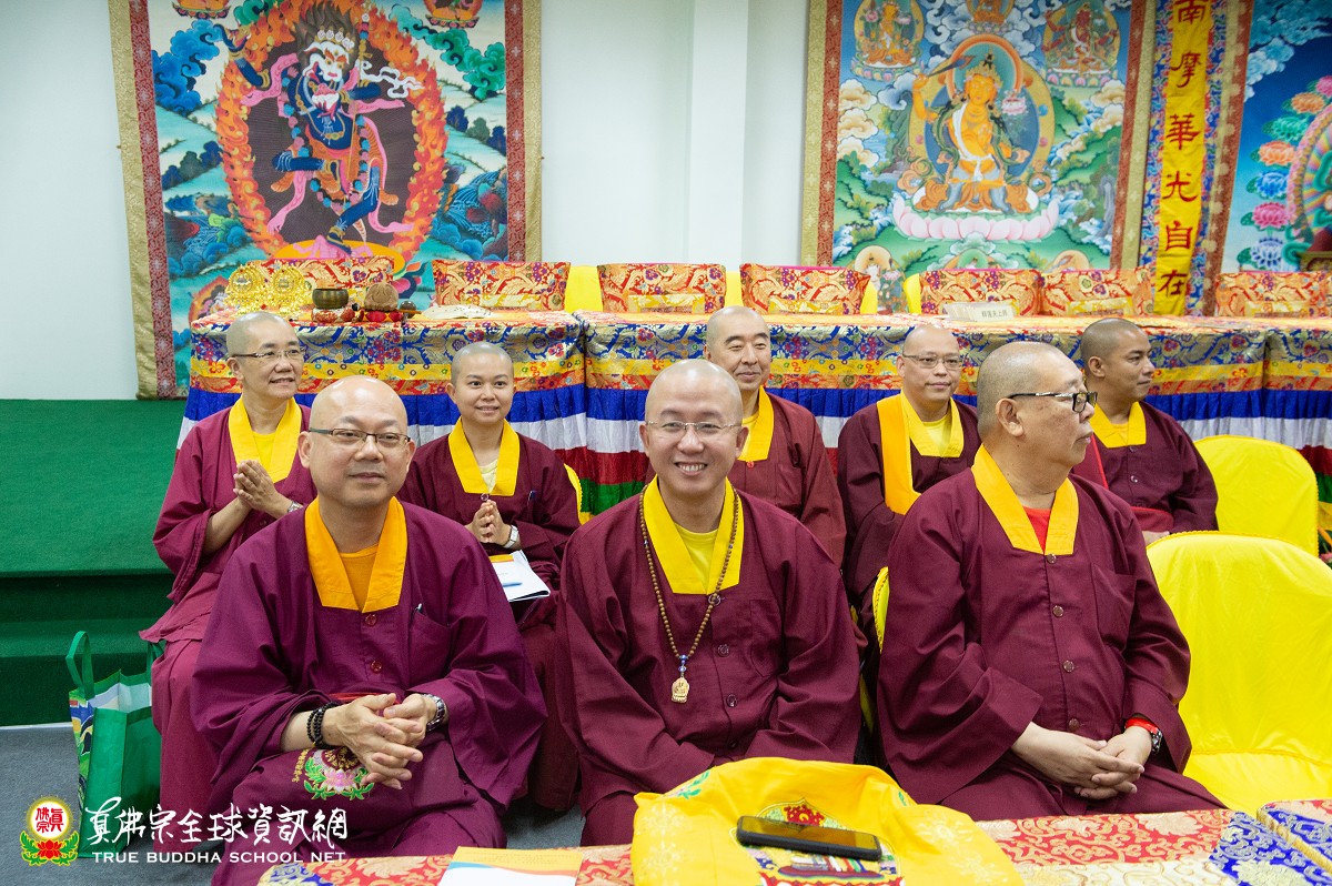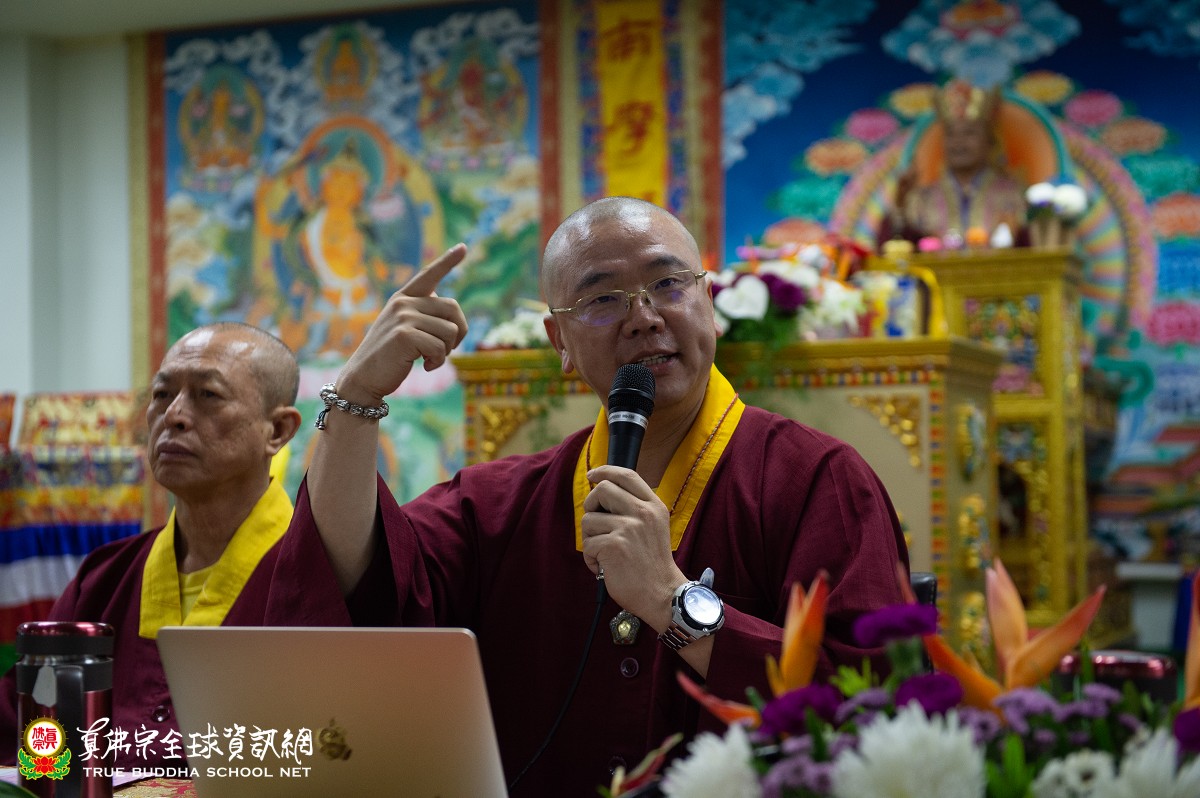 上師期望這些話可以觸動每個人的心。另外,蓮僧上師要蓋西雅圖行政中心。上師期望往後鼓勵所有宗派的各級弘法人員一定要來,要實修實證。他也特別感恩處長們,往往半夜也一起開會、不分日夜的開會,宗委會與在座大家是一體的,宗派一定可以永續傳承下去。
