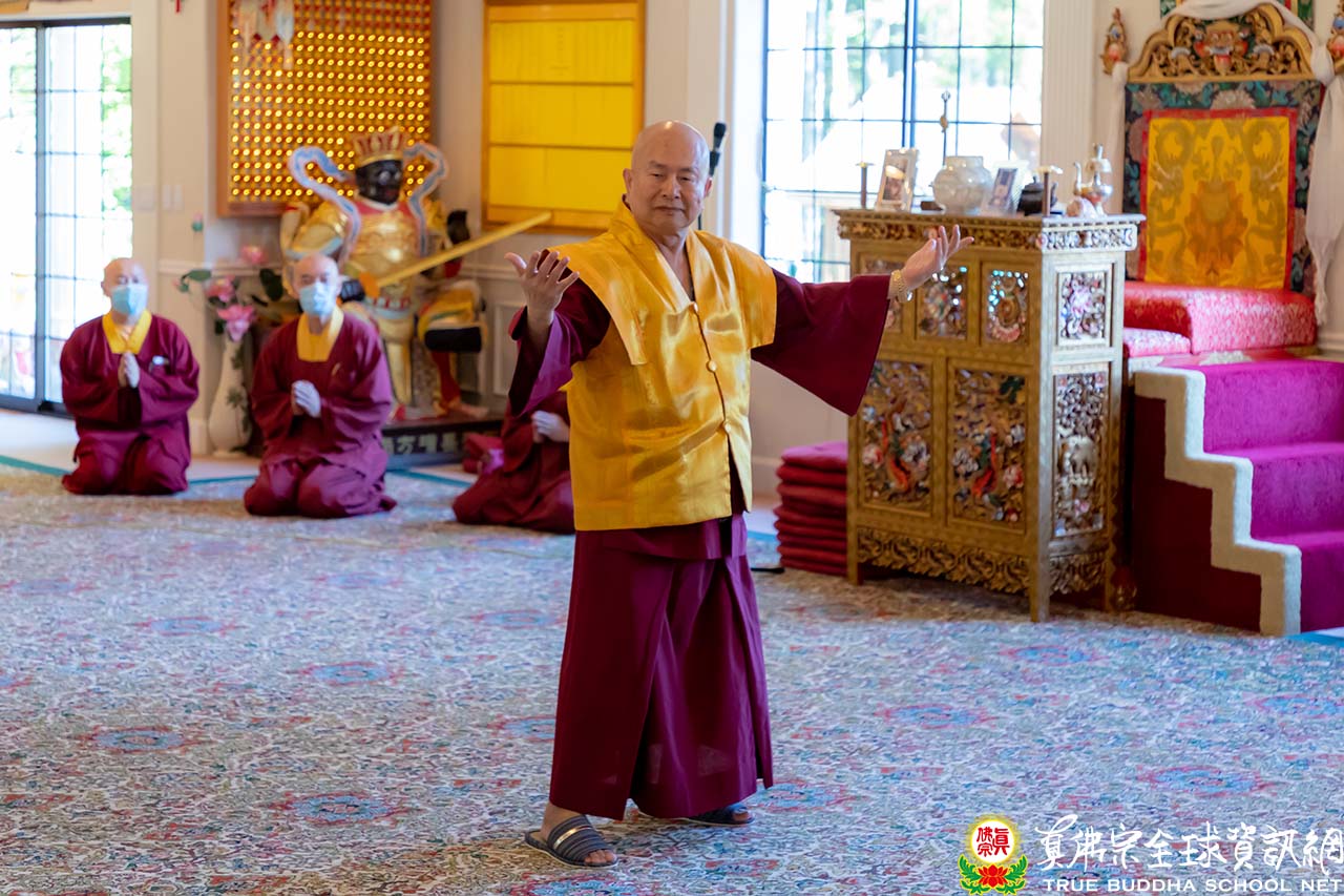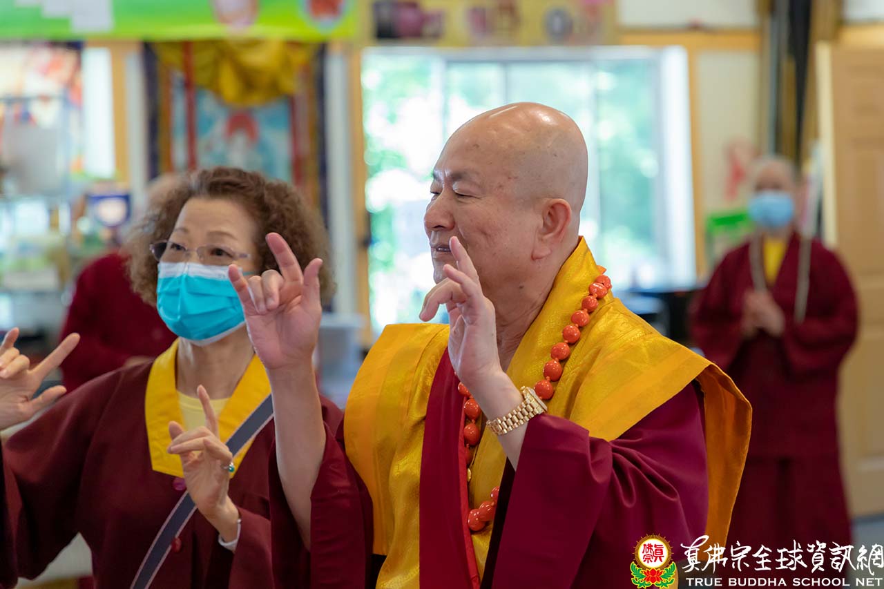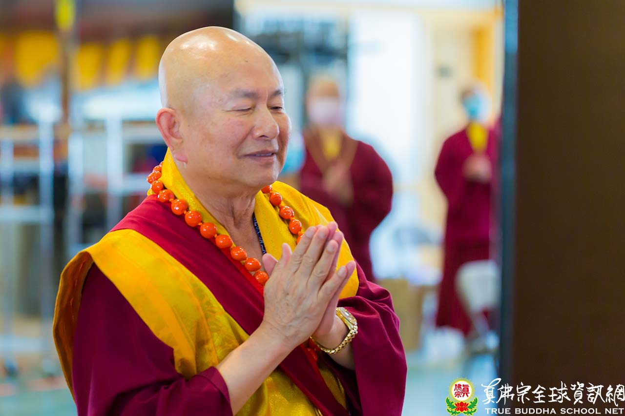 師尊與師母在午餐其間,聽取現在疫情的狀況,也關心全球的時事。於下午三點整,師尊與師母一同來到護摩寶殿,正面迎來的大電視上全都是在線上熱情與師尊、師母問候的同門。今天是除瘟疫度母的護摩法會,祈願在師尊的大加持力以及在除瘟疫度母的護佑下,護摩火的烈焰能滅除瘟疫之災,讓眾生生命不再受到威脅。