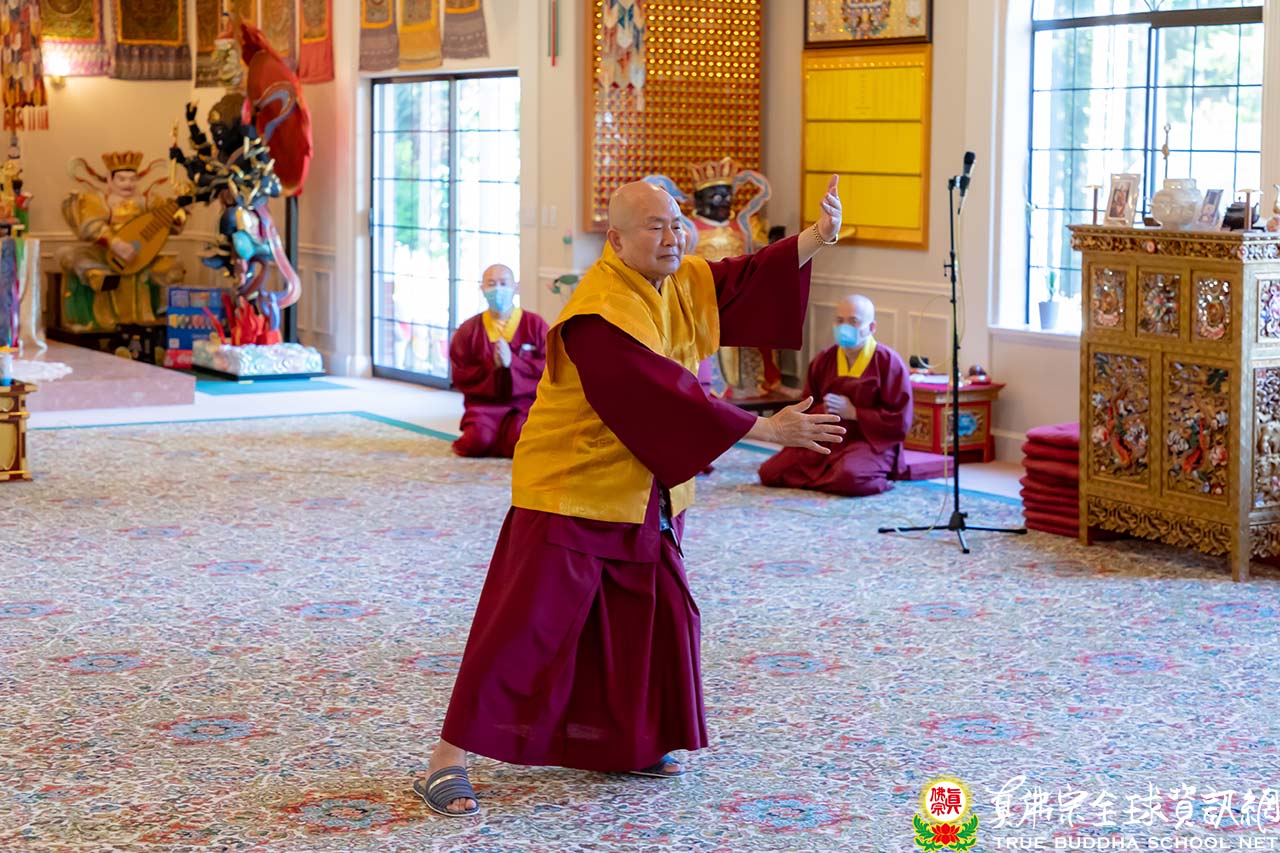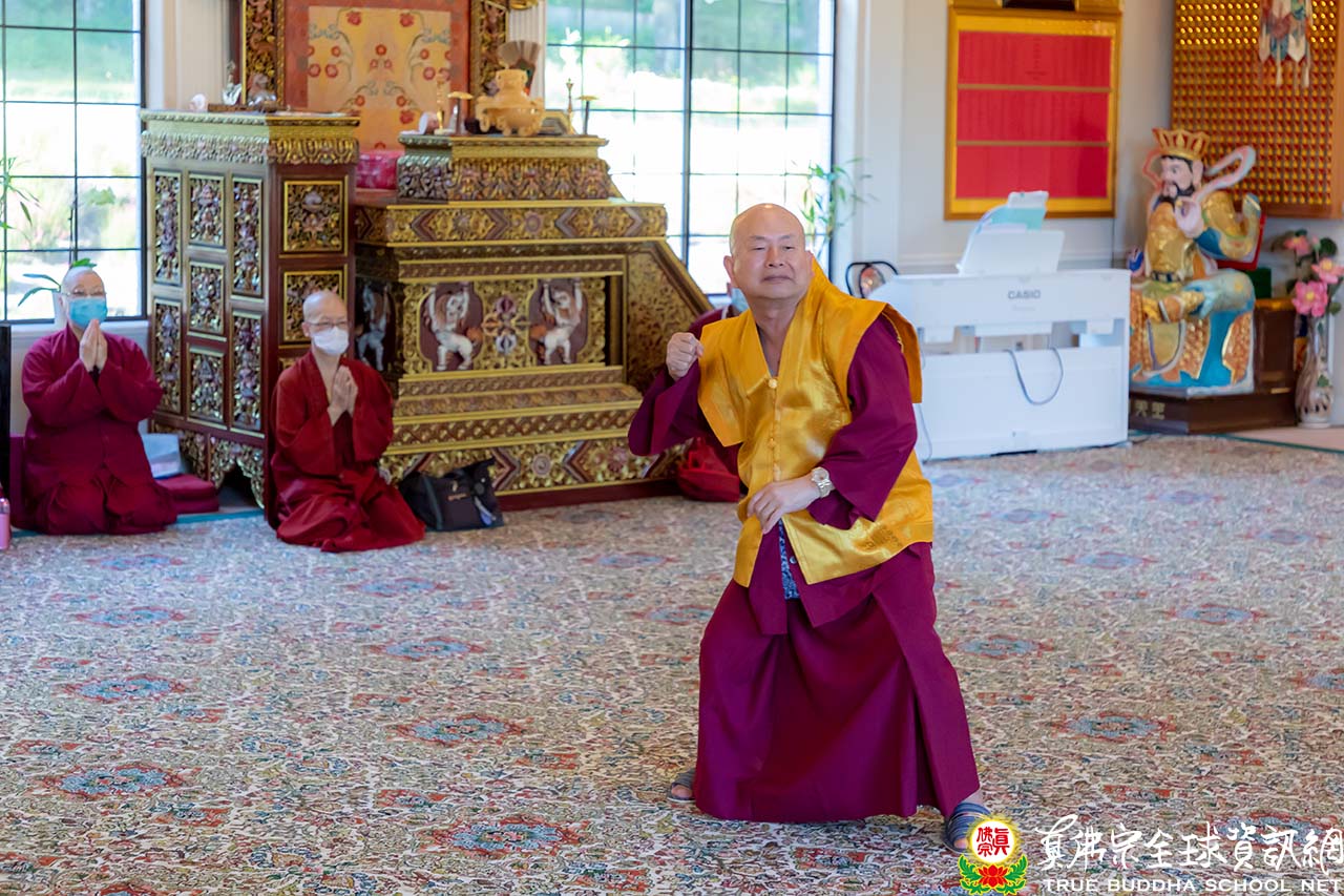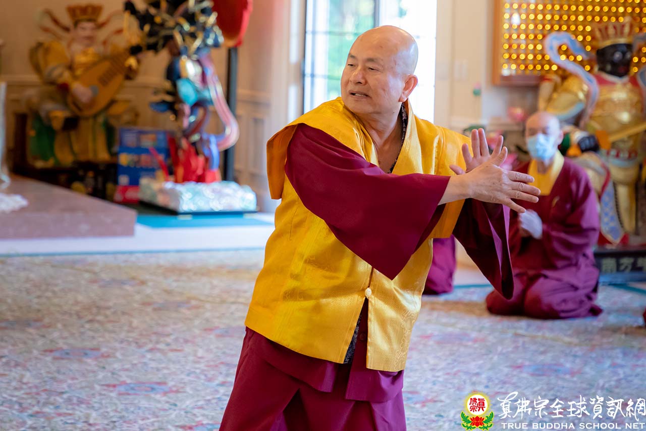 師尊與師母在午餐其間,聽取現在疫情的狀況,也關心全球的時事。於下午三點整,師尊與師母一同來到護摩寶殿,正面迎來的大電視上全都是在線上熱情與師尊、師母問候的同門。今天是除瘟疫度母的護摩法會,祈願在師尊的大加持力以及在除瘟疫度母的護佑下,護摩火的烈焰能滅除瘟疫之災,讓眾生生命不再受到威脅。