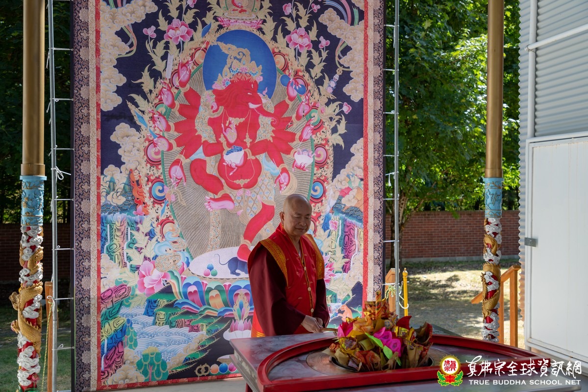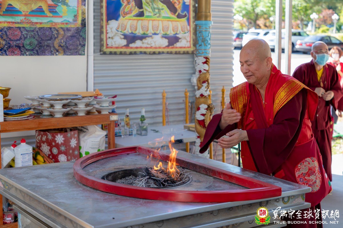 2020年8月2日下午,美國真佛宗西雅圖彩虹雷藏寺恭請根本上師蓮生活佛主壇紅財神護摩大法會。紅財神(Ganesh)在藏傳佛教中又稱象鼻財神,是很有名的財神資糧主,除此之外,象鼻財神在印度亦主掌去除教育或任何學習路上的所有障礙,家家戶戶凡有正在學習中的孩子,家中一定恭奉象鼻財神,每逢象鼻財神的聖誕大喜日,全國歡慶,孩子們更是不能忘記向象鼻財神頂禮。傳說印度三大方言之一的Tamil(泰米爾)正是象鼻財神以天語之音所傳,是全世界最好聽、最順耳的語言。紅蘿蔔、白蘿蔔是紅財神最喜歡的食物,「祂是最大的財神,叫做資糧主」,所以,蘿蔔葉就是數眾生的財,「每一個很小的葉子都是一個財庫,你有多少財庫就給你多少,給你幾片葉子,你就有多少錢,幾個財庫,你只要吃下幾片葉子,你就有多少財庫。」法王教導修持紅財神的口訣,「祈求祂降臨的時候,你的兩個尾指就是象鼻,要動一動,互相摩擦,表示觸動紅財神的心,祂的鼻子就會吐財寶從天上下來」,最主要的是能請得到祂來,祂的重點在祂的鼻子,「最重要的口訣,你要結忿怒金剛杵印。」