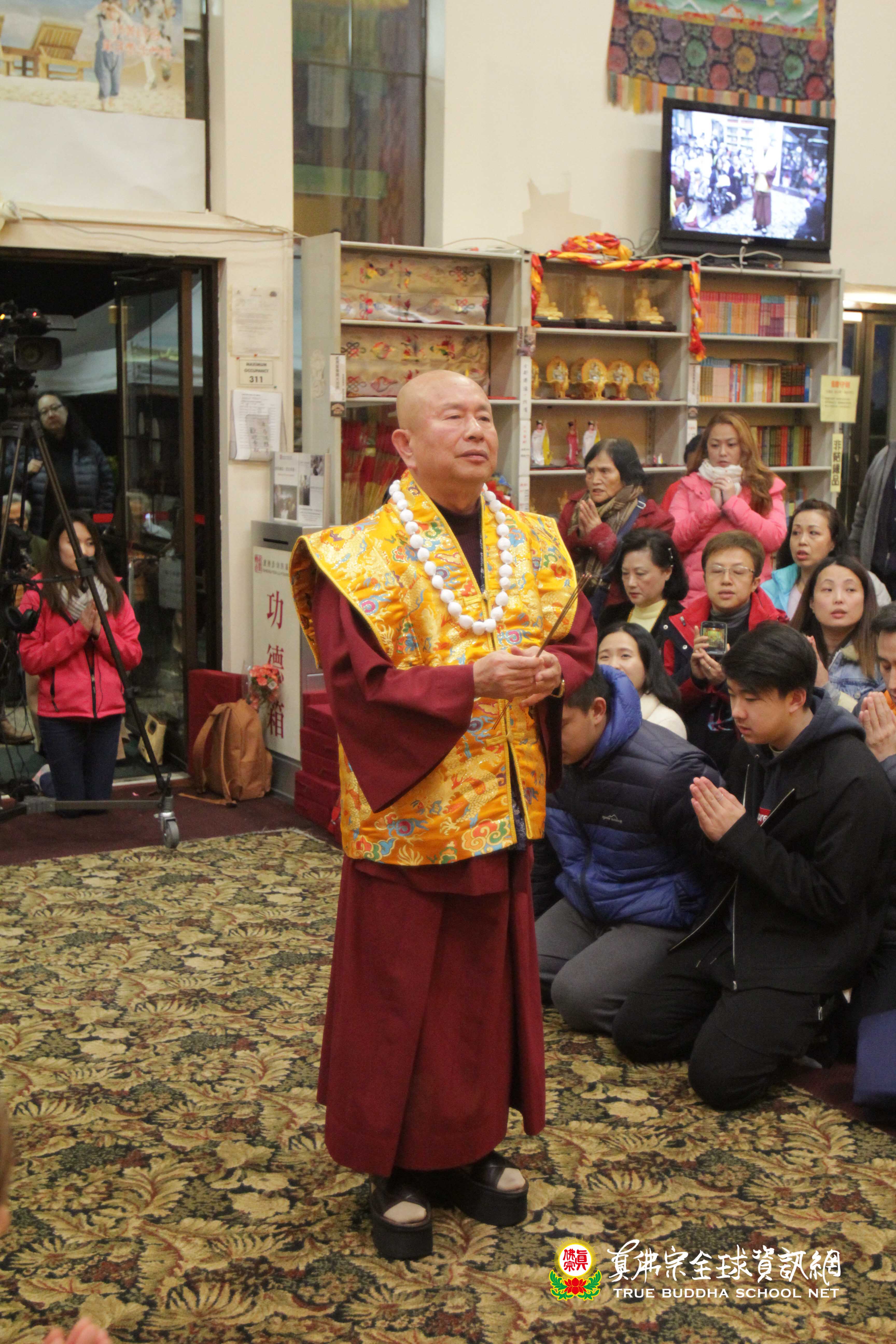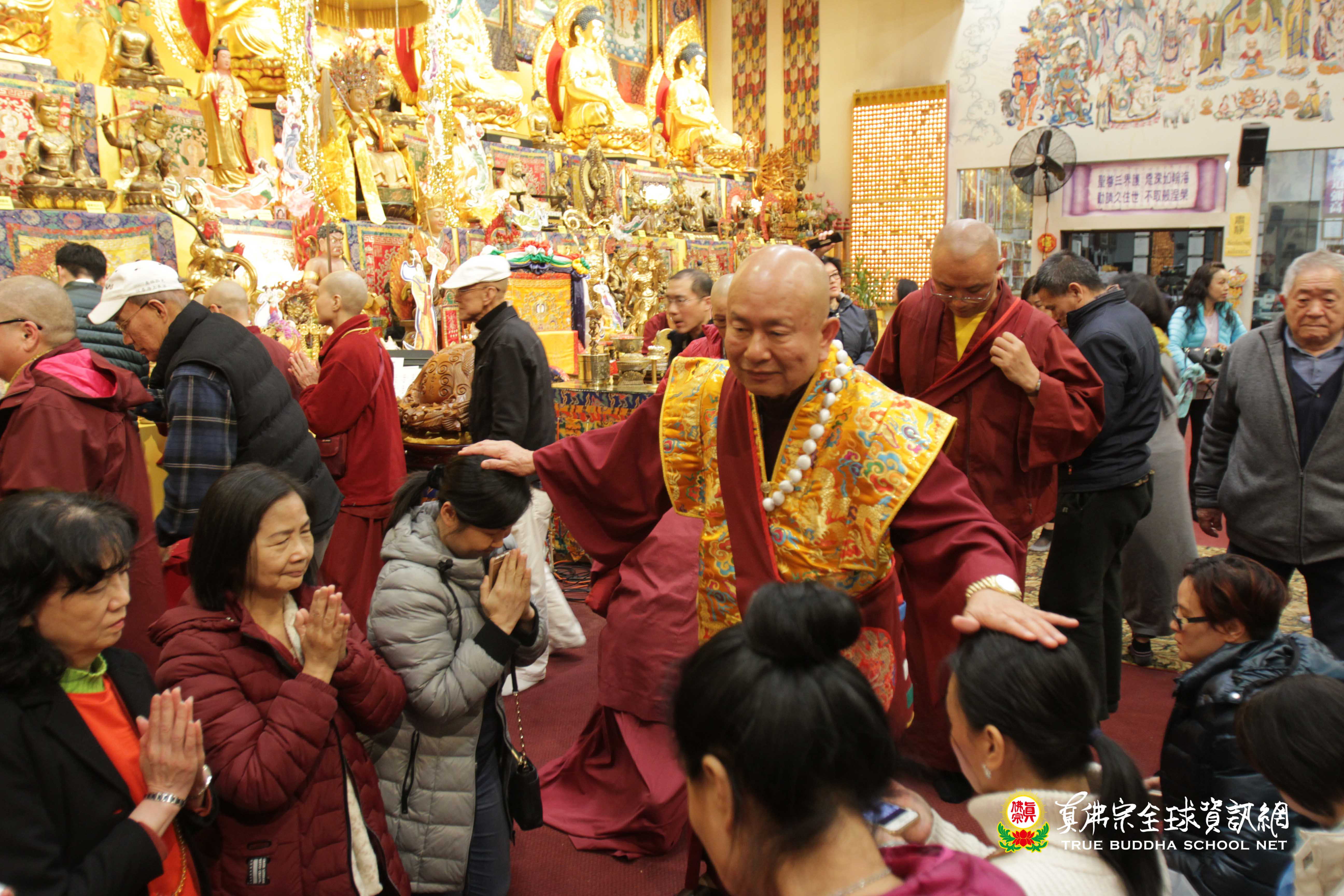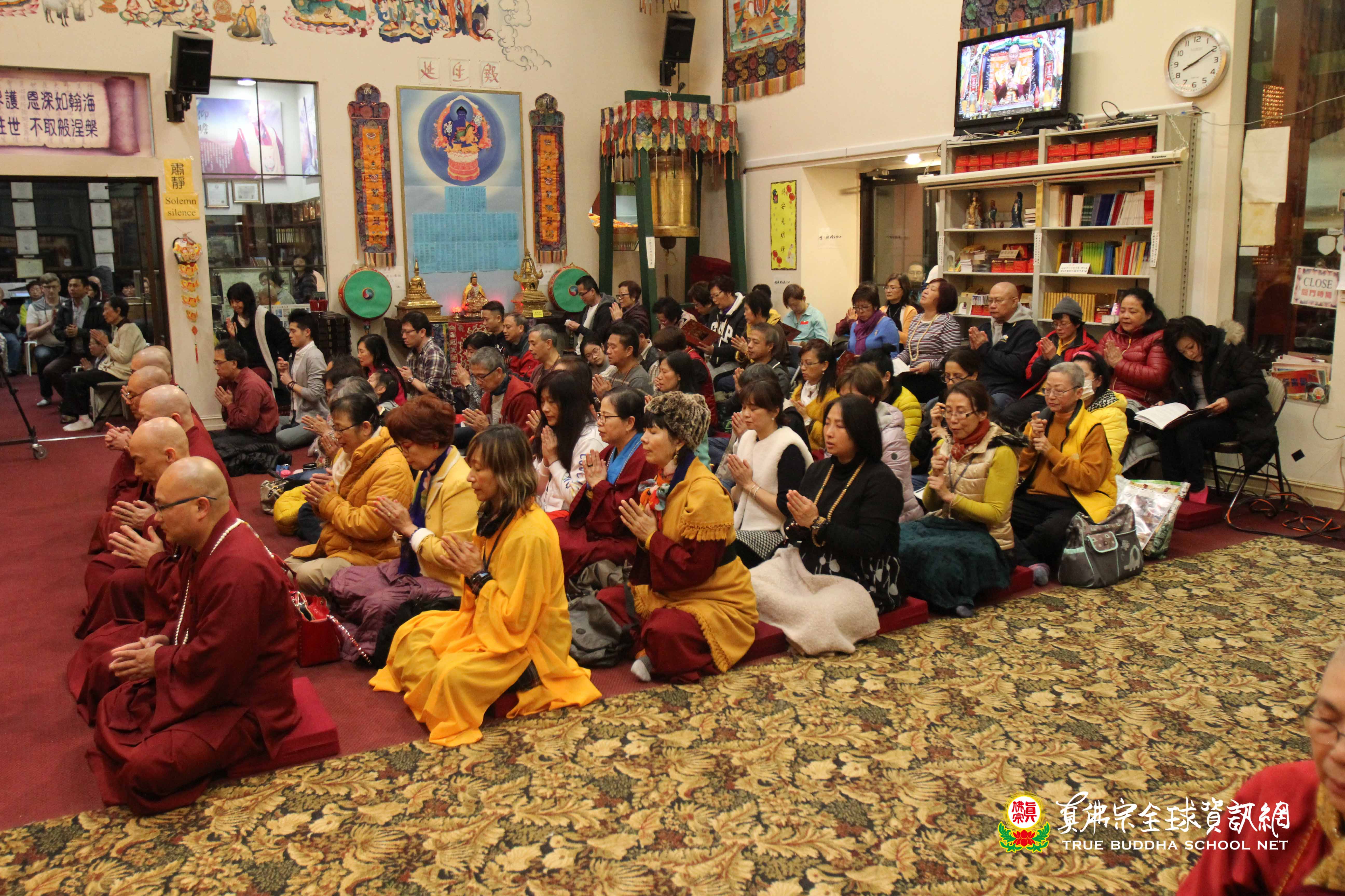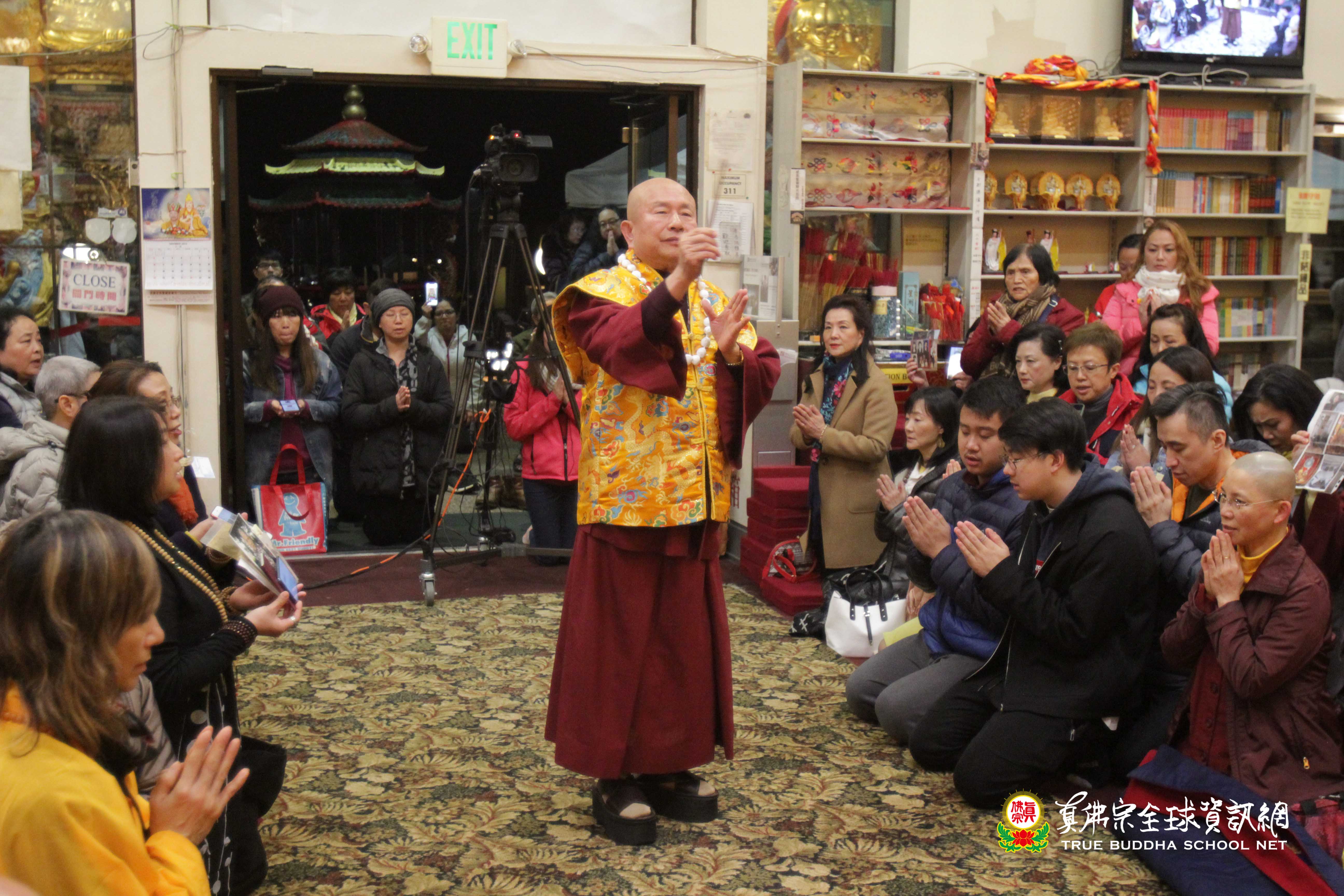 同修後,聖尊讚揚當晚的貴賓們,首先提到Teresa師姐無論是在宗委會、盧勝彥佈施基金會,或其它真佛宗的道場,她都是義務發心幫忙會計事務方面的問題,她有願力的發心幫忙,聖尊讚揚她有地藏王菩薩的精神。接著,聖尊提到法國大弘出版社范秀姬師姐,她翻譯聖尊文集成為法文,從校稿、設計封面到印刷出版,將譯好的書給圖書館或到大學,再到行銷,全部都是由她一手包辦。現在,還自己籌備要獨資在法國建立真佛宗道場,聖尊讚嘆道,這個就是地藏王菩薩的精神。聖尊說道,我們這裡就有現代的地藏王菩薩,他們發的願力都有地藏精神,他們發了願一定把真佛宗弘揚出去。