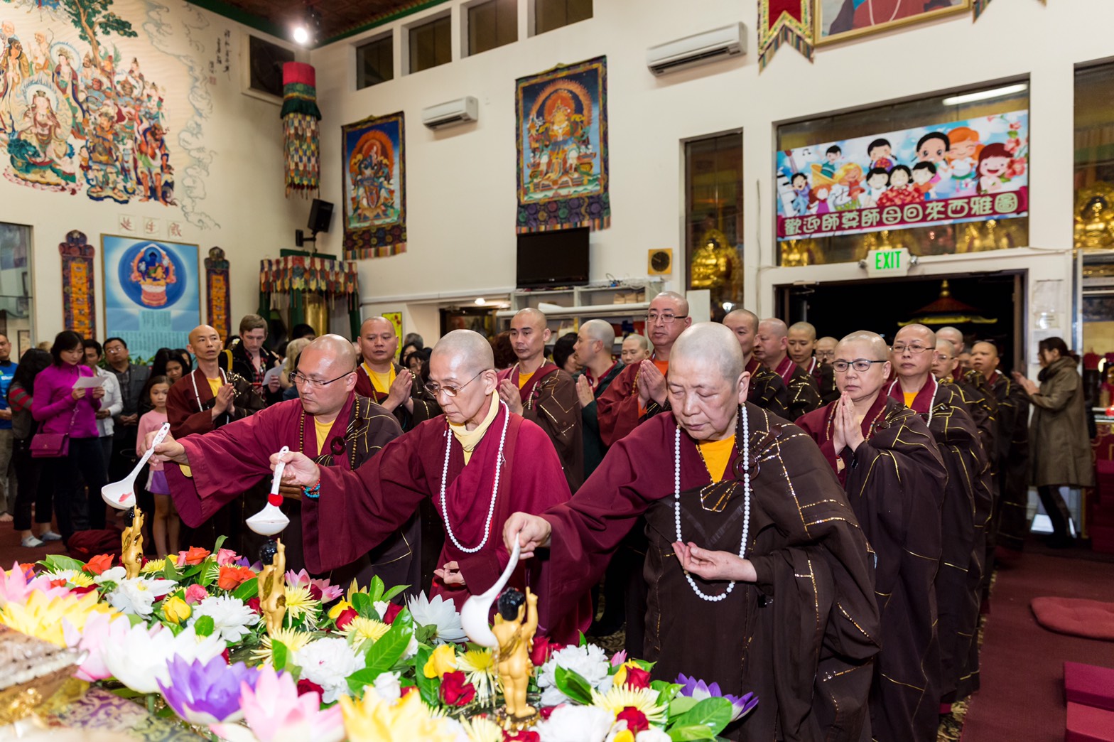 西雅圖雷藏寺於五月十四日星期六晚上八時舉辦浴佛大典準時進行,由釋蓮花德輝上師帶領同修釋迦牟尼佛本尊法,並於同修中加誦「浴佛功德經」;釋蓮旺上師、釋蓮潔上師、釋蓮悅上師、釋蓮印上師、釋蓮栽上師、釋蓮訶上師、釋蓮者上師、釋蓮晴上師、釋蓮萬上師、釋蓮伃上師、釋蓮友上師、釋蓮喜上師、釋蓮彥上師、釋蓮花璧珍上師、蓮花春蓮教授師出席護持。與會貴賓:廖東周大使夫人Judy師姐、周慧芳律師、周衡醫師、宗委會會計師Teresa師姐伉儷,來自各地參加的同門善信人數眾多,雷藏寺座無虛席。