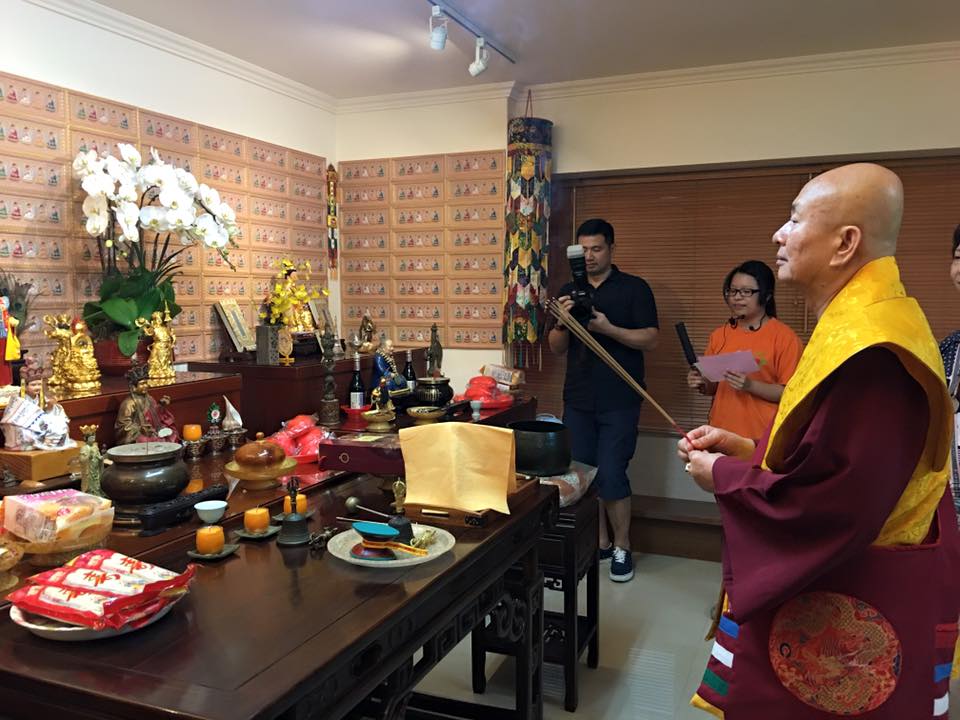5月11日蓮生活佛與師母蓮香上師於搭機返回西雅圖前,傍晚應弟子所求於林口「寶聚同修會」開光,賜墨寶及開示。