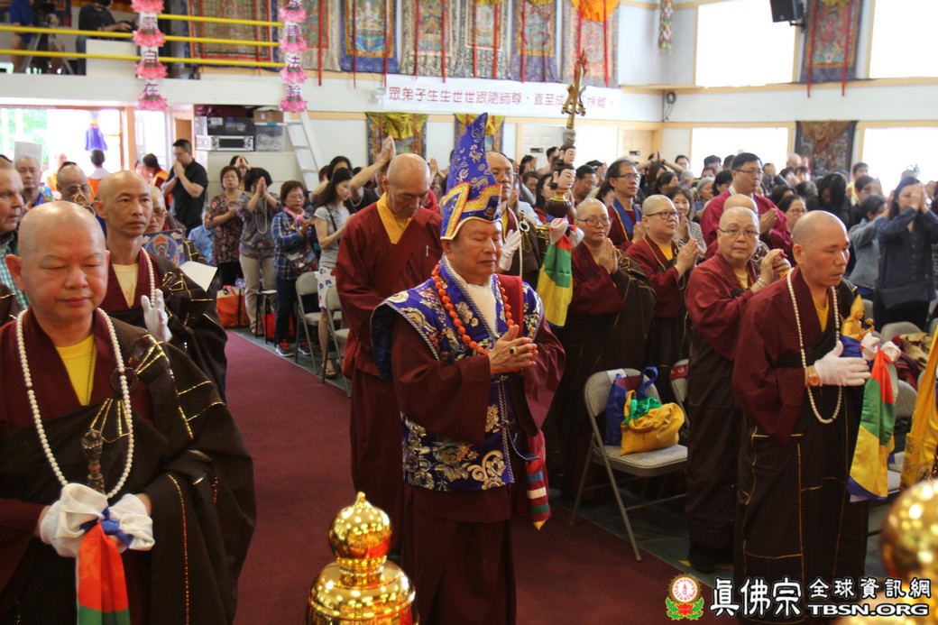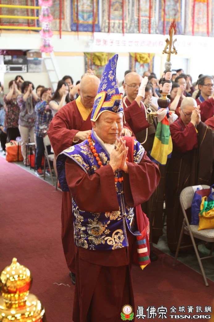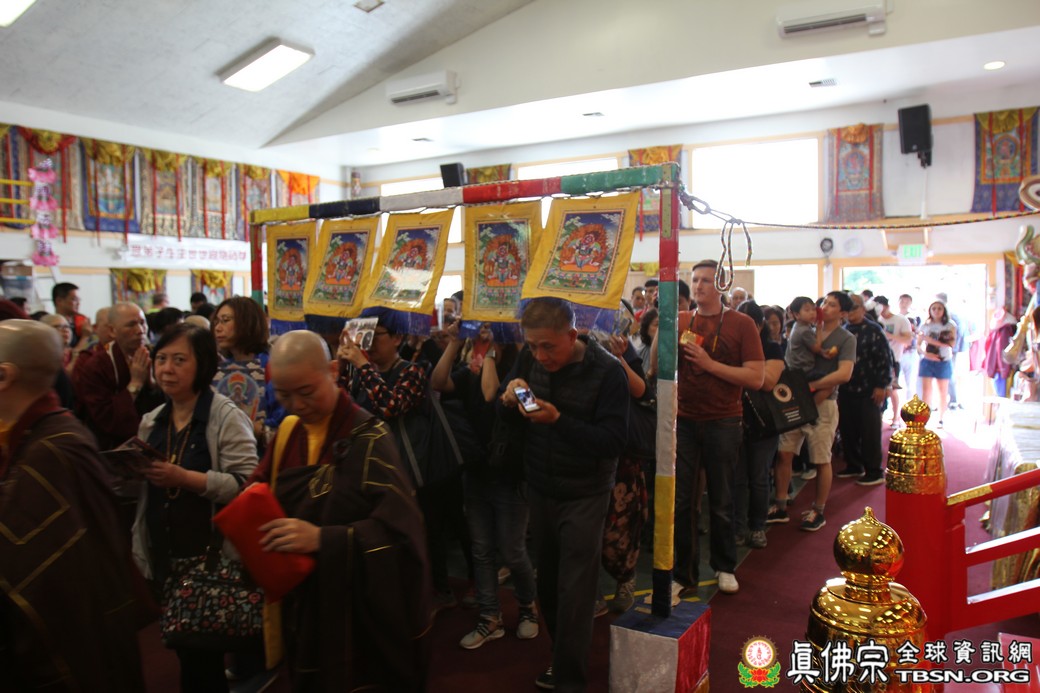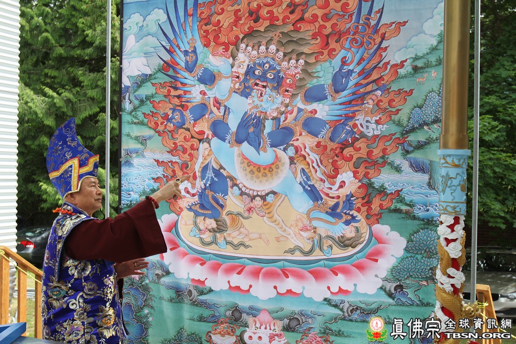 2019年6月9日下午,美國西雅圖彩虹雷藏寺恭請根本上師蓮生活佛盧勝彥主壇普巴金剛護摩大法會。普巴金剛是蓮華生大士在進入西藏的時候,所遇到的障礙神之一,障礙蓮華生大士進入西藏。經過蓮華生大士調伏以後,祂就變成佛教的守護神,祂本來是笨波教的神,人稱墳場主。普巴金剛有2個翅膀,祂是會飛翔的,祂的翅膀像刀片的葉子,很長,飛起來非常快,而且非常的鋒利,可以當成武器。普巴金剛的正面的是金剛手菩薩、金剛薩埵、大勢至菩薩、普賢菩薩,右面是大威德金剛、文殊師利菩薩,左面是馬頭明王、觀世音菩薩跟阿彌陀佛,祂的身等於很多佛菩薩的綜合,威力無窮,祂主要是在降伏。另外,如果你受了普巴金剛的灌頂,你跟祂相應了,所有一切魑魅魍魎,種種一切的惡統統都消除掉,只要你受了普巴金剛的灌頂,就跟普巴金剛有緣,你也可以跟金剛手菩薩、馬頭明王有非常好的緣分。