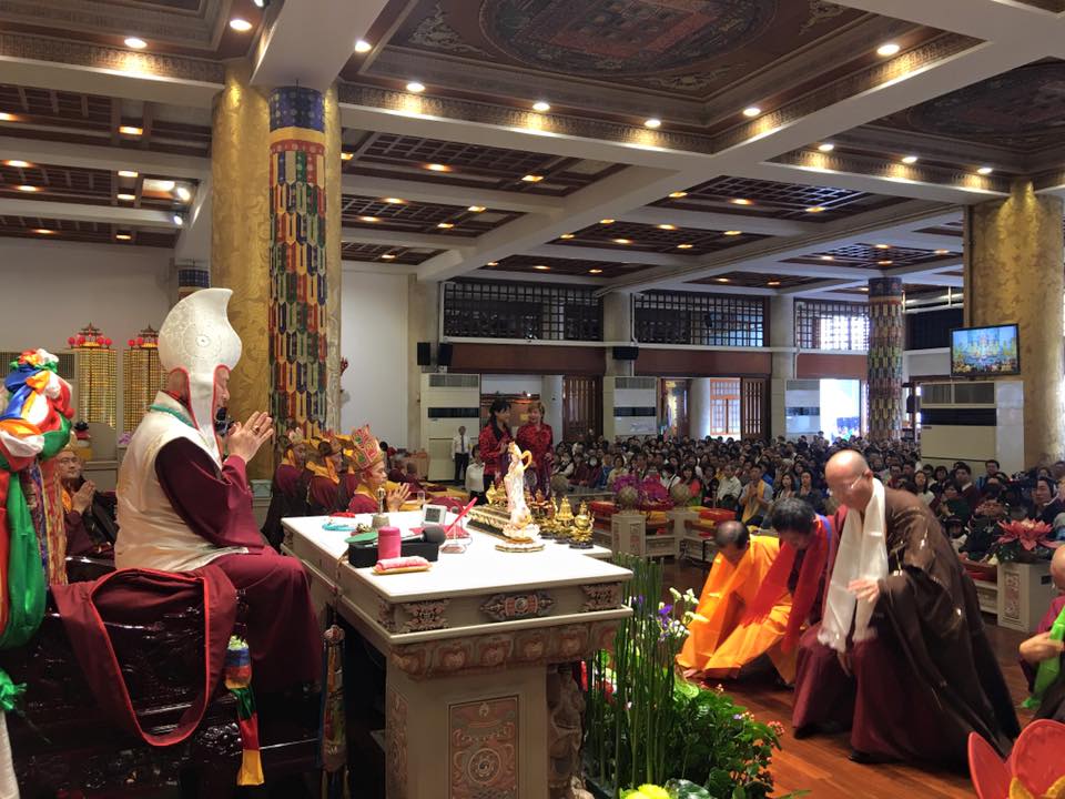 法會前,由蓮真上師代領〈福佑雷藏寺〉代表,敬向蓮生活佛請法儀式,圓滿吉祥。