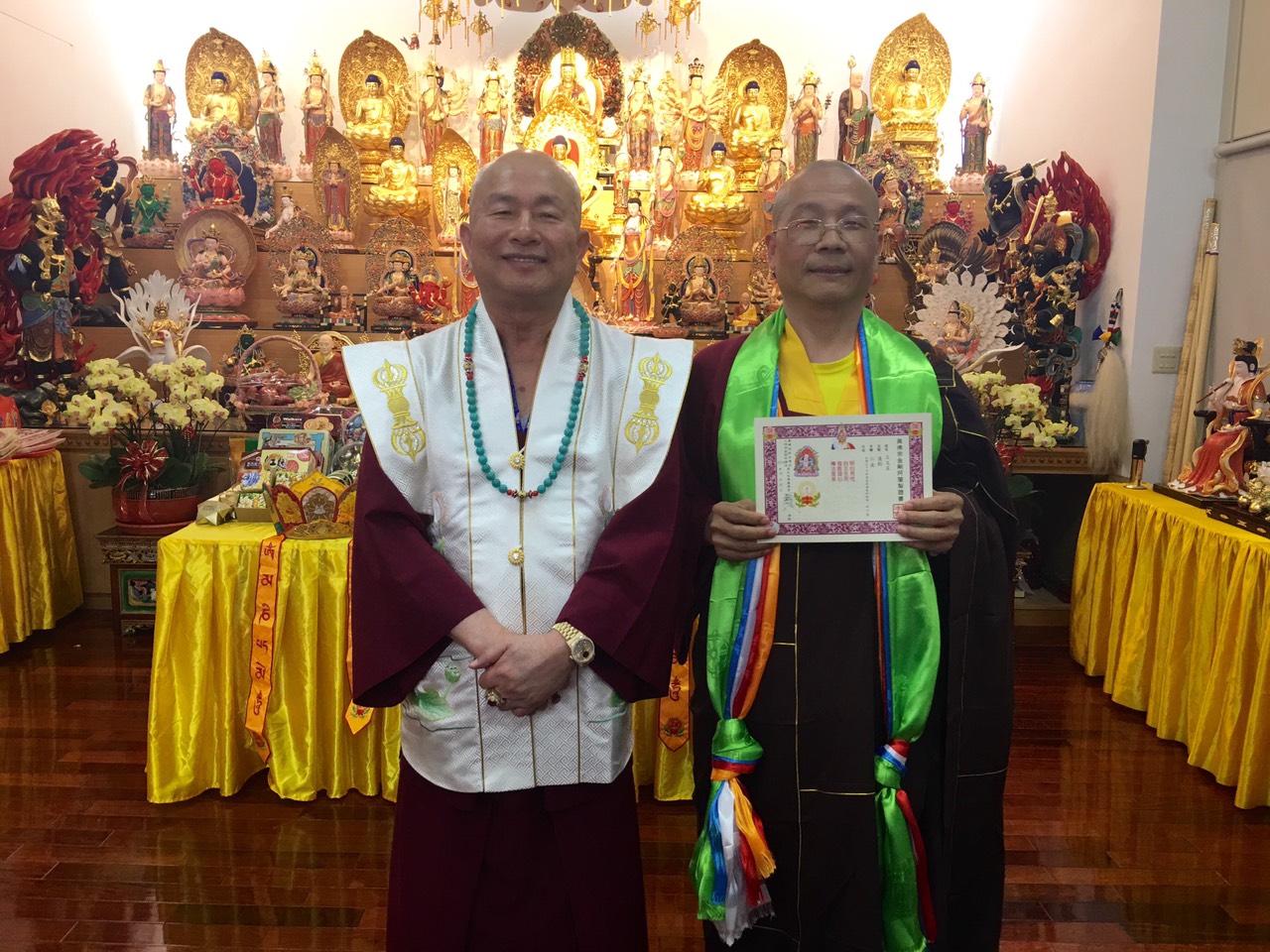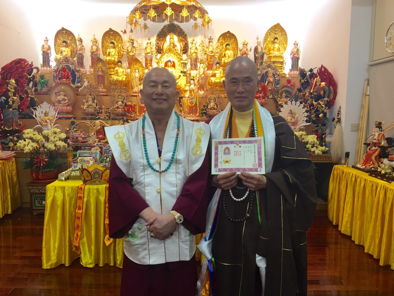 2016年3月5日蓮生活佛 盧勝彥法王於「台灣雷藏寺」賜予蓮真、蓮郲、蓮伊三位上師「金剛阿闍黎」灌頂