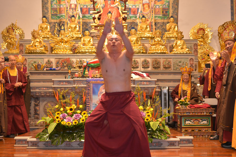 為了示現一個真正每日修身,終至成就「金剛身」,盧師尊現場將用最真實的面貌展現,脫去了龍袍,完全展現盧師尊「金剛身」結實的肌肉,用「真實」破除一切,盧師尊的金剛身,已證明了一切!